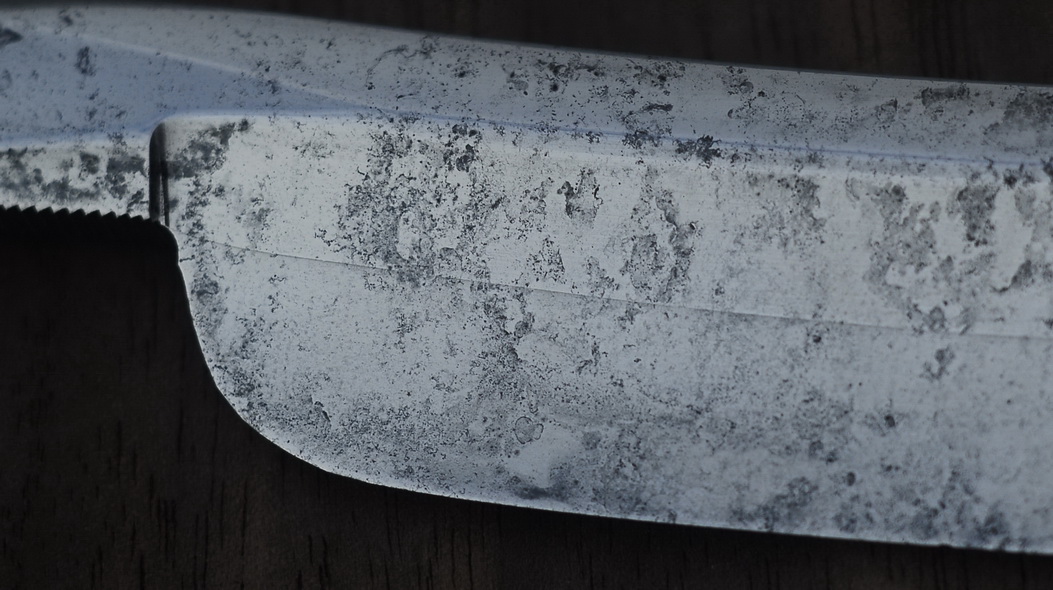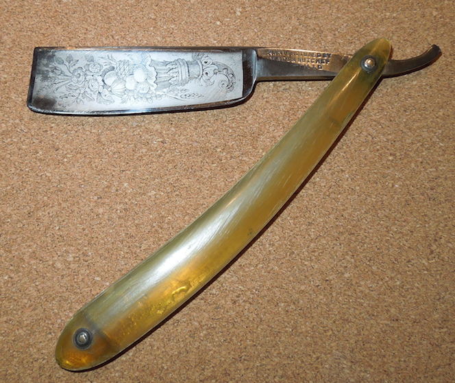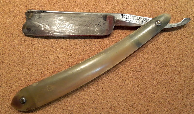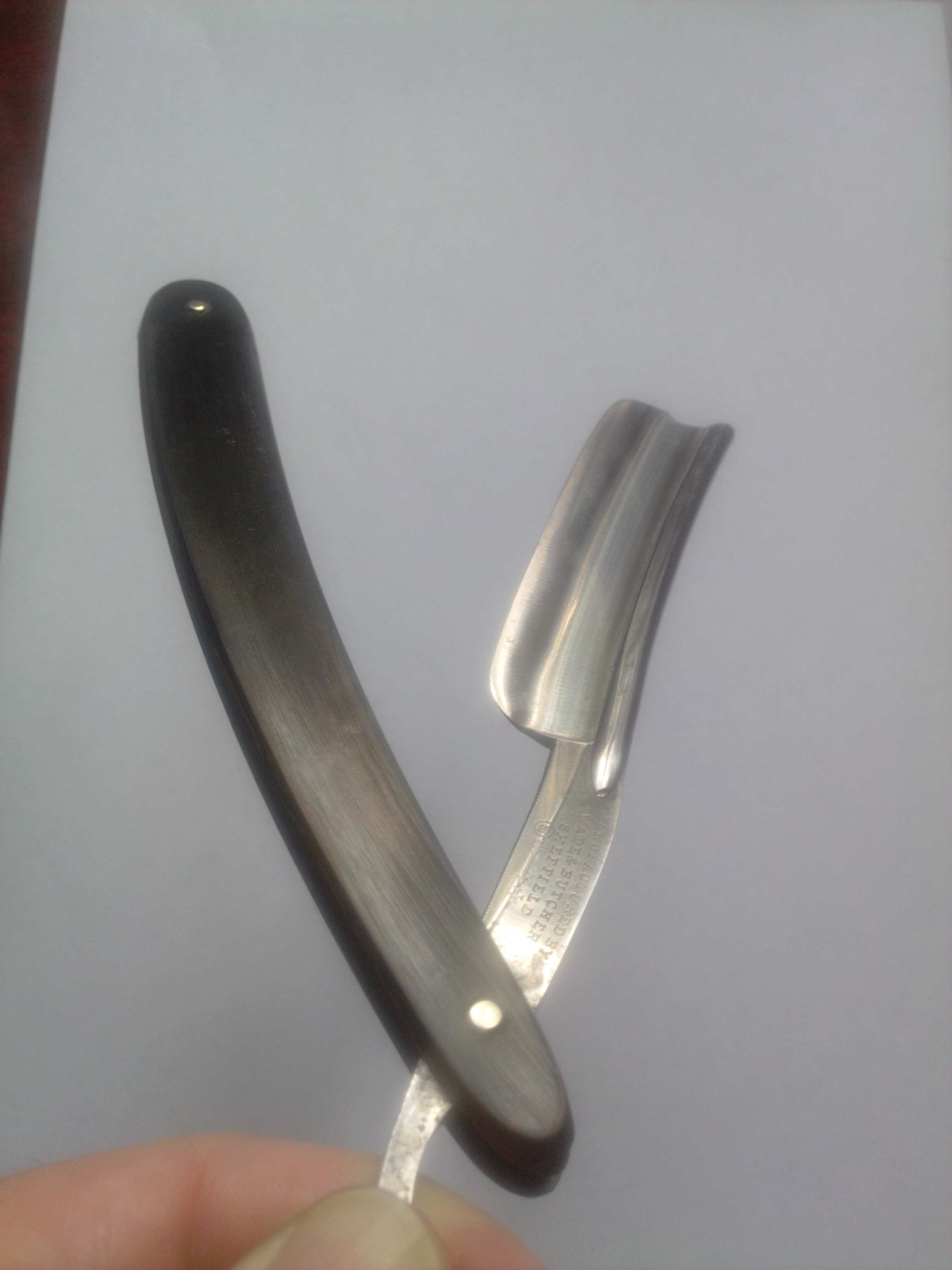 Насколько я знаю, это старая английская бритва из Шеффилда. По словам продавца, это конец 19 века. Но почему она такая "толстая", семь с небольшим мм, я имею в виду толщина обуха? Интересует примерный возраст и стоимость. Рукоять из рога, всего одна небольшая трещинка у пина. Да и вообще, накидайте информации побольше!