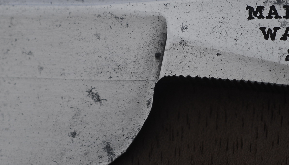 Давно присматривал себе Батчера. Вот перед этим не устоял  . Точнее перед завораживающей надписью : "DIAMOND EDGE RAZOR", что, как я понял, в переводе "Алмазный край бритвы". Все бы ни чего, но при первом же взгляде на бритву в живую, этот край отчетливо нарисовался полоской в половину ширины полотна. Его видно визуально по характерному блику и рельефно даже виден переход. Надеюсь на фото это видно.