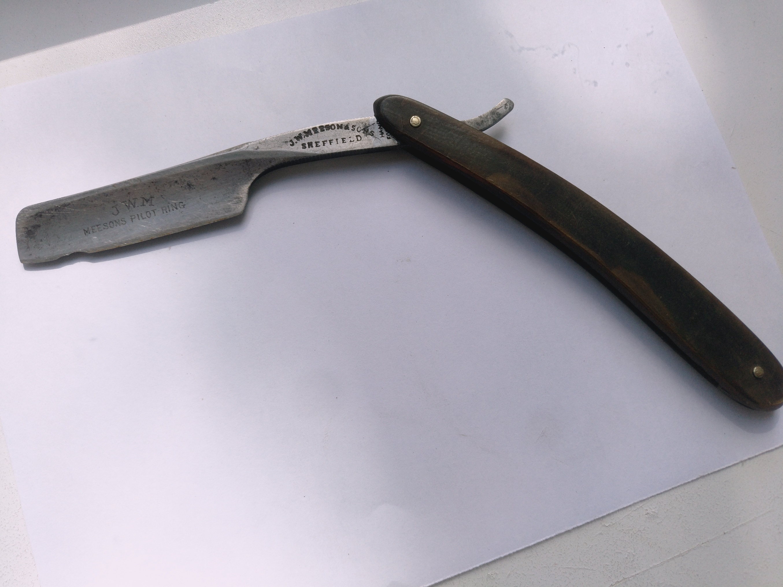 Хотя, может есть смысл найти хорошего заточника,попробовать привести бритву в надлежащий вид, оставить себе и  ....Блин,это же все таки архикруто,брить свою физиономию антикварным предметом XIX века!)