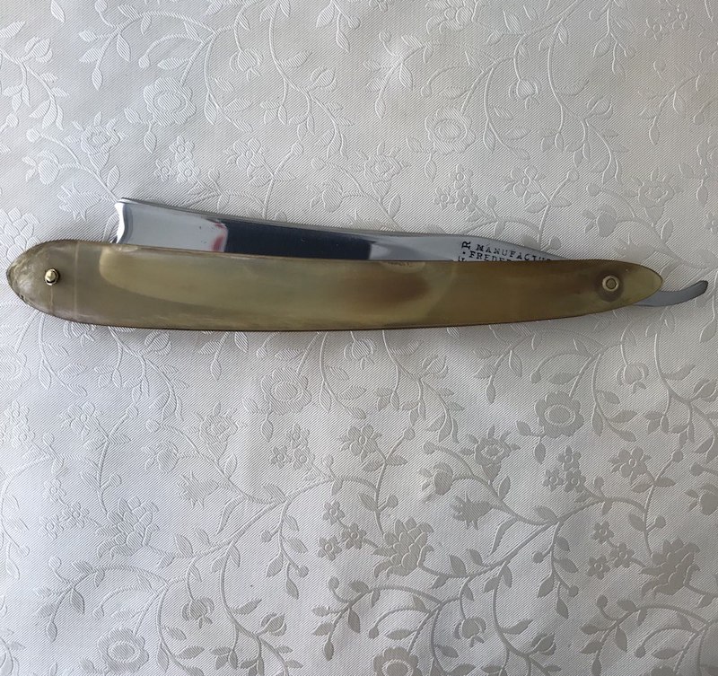 "Frederick Reynolds", Sheffield. (!*)Лежала несколько лет, совершенно новая бритва. Изрядно выпив, решил заточить. Уронил. В итоге трещина 10мм. С тех пор, уже лет 10 не точу под мухой.