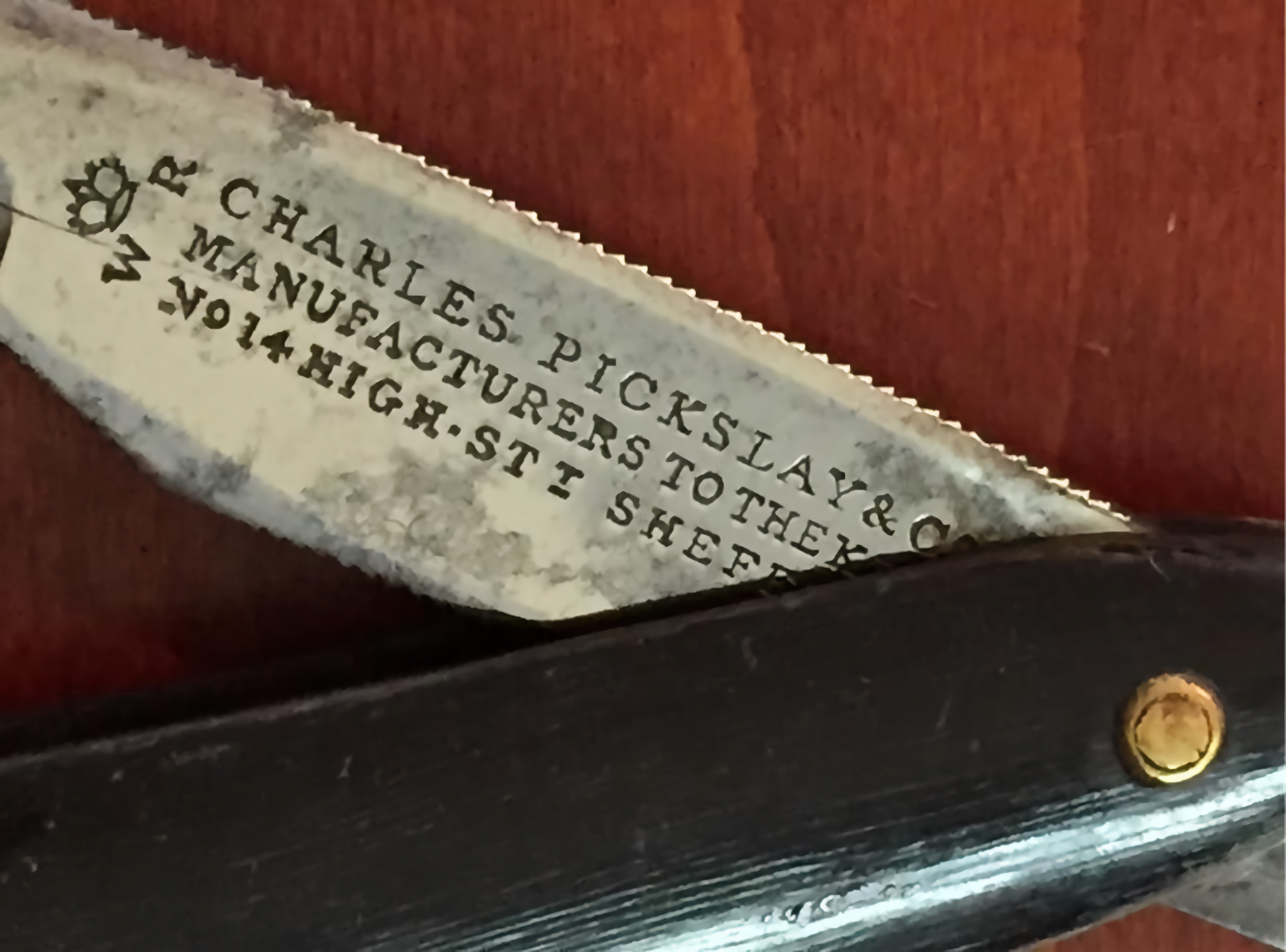 This puff for what was no more than a High Street ironmonger seems to have been an attempt to ape Joseph Rodgers’ showroom and royal patronage. Thomas Asline Ward sarcastically described it as a ‘flaming advertisement’ and poked fun at the ‘debased Strawberry Hill Gothic’ of the vaunted Show Rooms (Bell, 19102). Ward was a friend of Pickslay and wrote about him in his diary. They joined the local Volunteers together and shared an interest in helping the poor and in various reform projects (such as those relating to elementary schools, the abolition of gin shops, and ending the employment of boy chimney sweeps). Ward evidently had more regard for Pickslay’s militia skills than his business abilities. He believed that Pickslay was too trusting and had a weakness for experimentation and inventing. In the 1820s, Pickslay had corresponded with Michael Faraday about the latter’s experiments in alloying steel with silver and other elements. This led to Pickslay’s speciality: knives, scissors, and razors made from ‘Peruvian Steel’. Some of Pickslay’s ‘Peruvian’ razors and knives have survived, though whether they contained silver, iridium, or rhodium has never been settled.