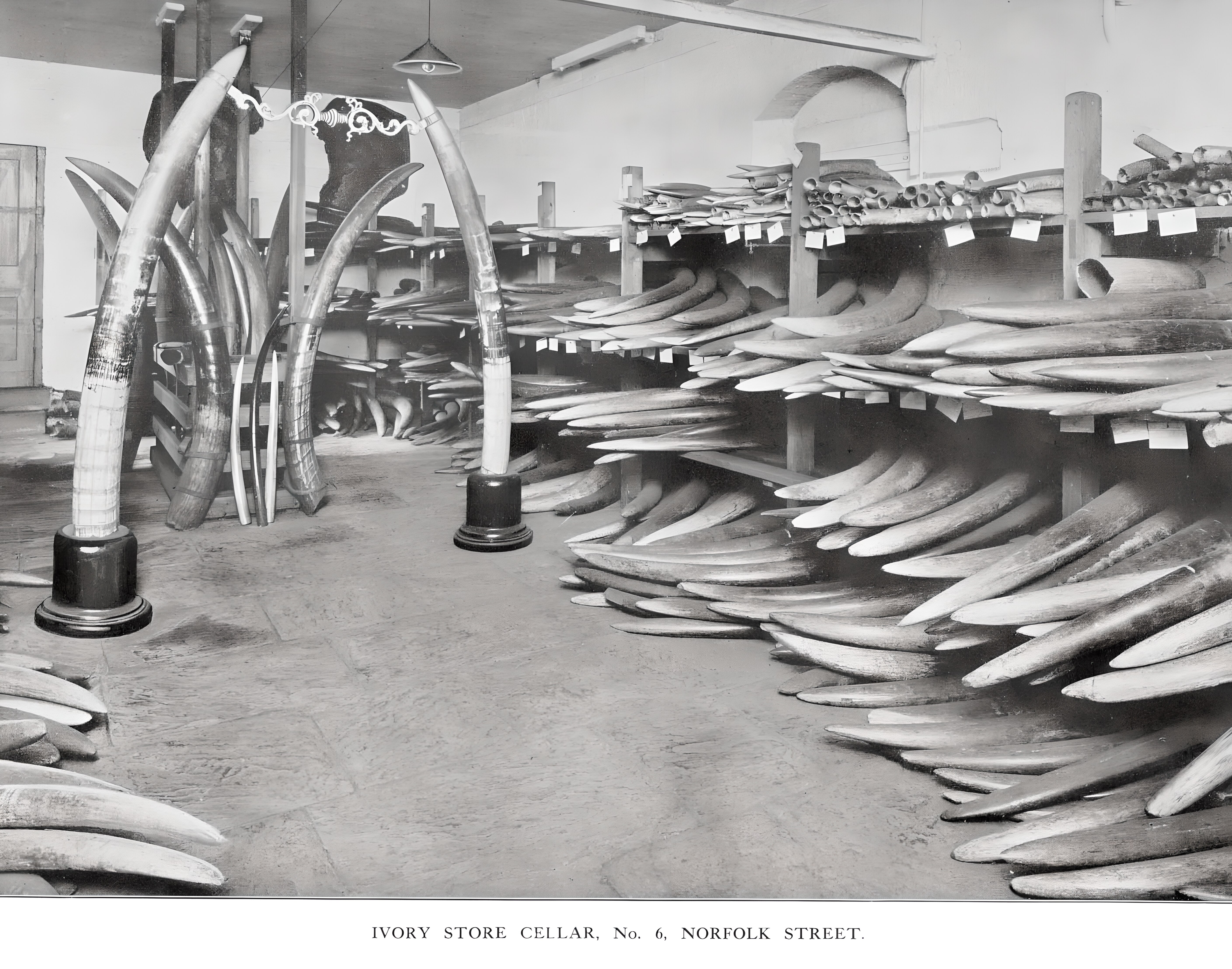 Ручки (оправы) английских бритв из перламутра, черепахи, слонаДобыча слоновой кости в 19 веке была сложным и опасным делом, в романе Луи Анри Буссенара "Похитители бриллиантов. Опасные приключения трех французов в Южной Африке", написанном в 1883 году, есть сцена охоты на слонов (действие романа разворачивается около 1875 года):