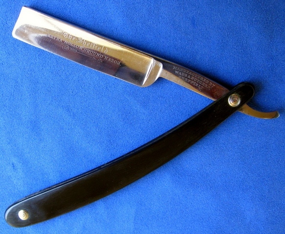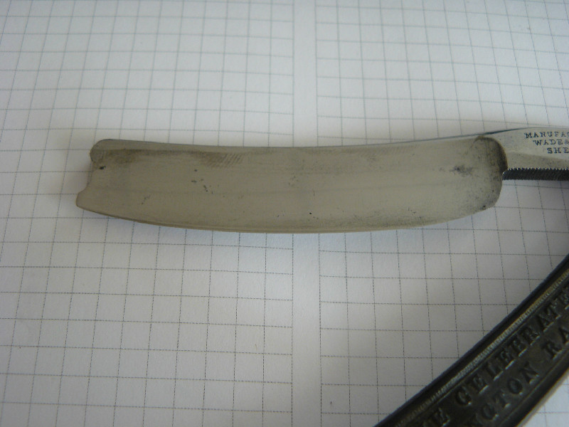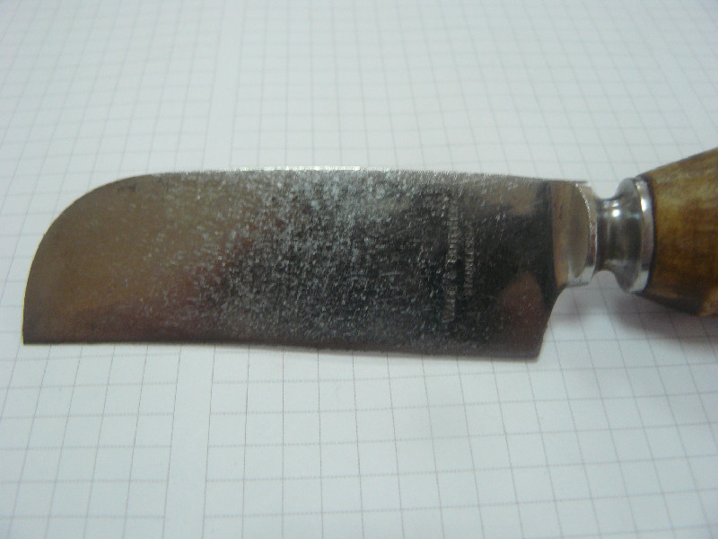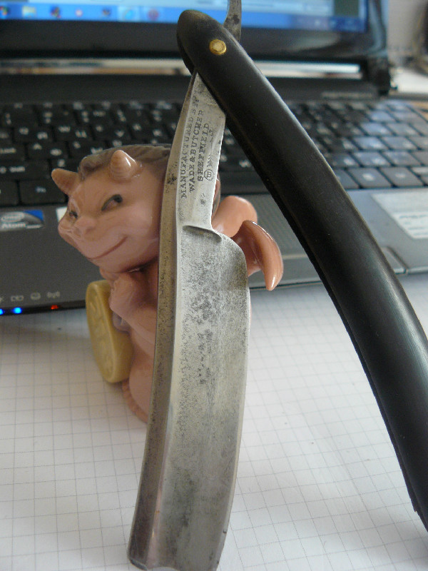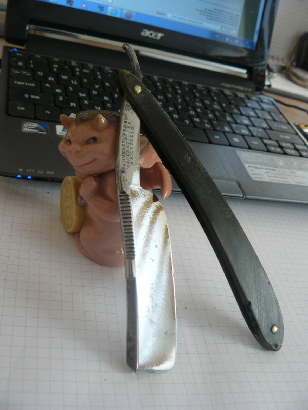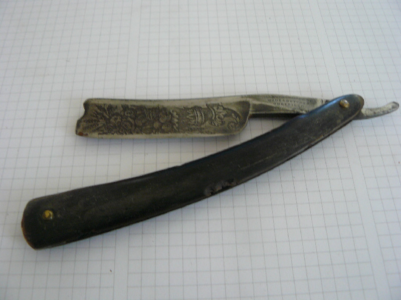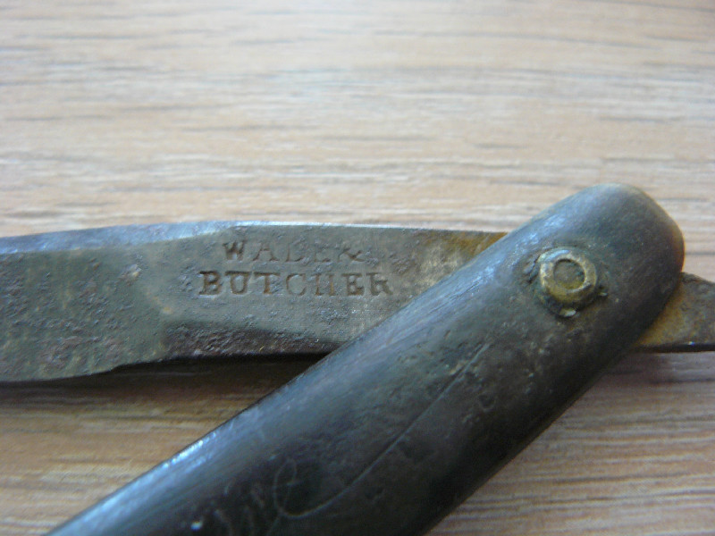 Одна бритва была куплена в кучке а в кучке много штучек. Ну бритва и бритва - по сути безымянная. Видать либо штамп плохо пробили либо сошлифовали много. Но при сильном всматривании видно окнчание штампа Батчера - стрела, мальтийский керст и надпись шеффилд. Видать отсутствие яркого штампа уберегло ее от бурной жизни.