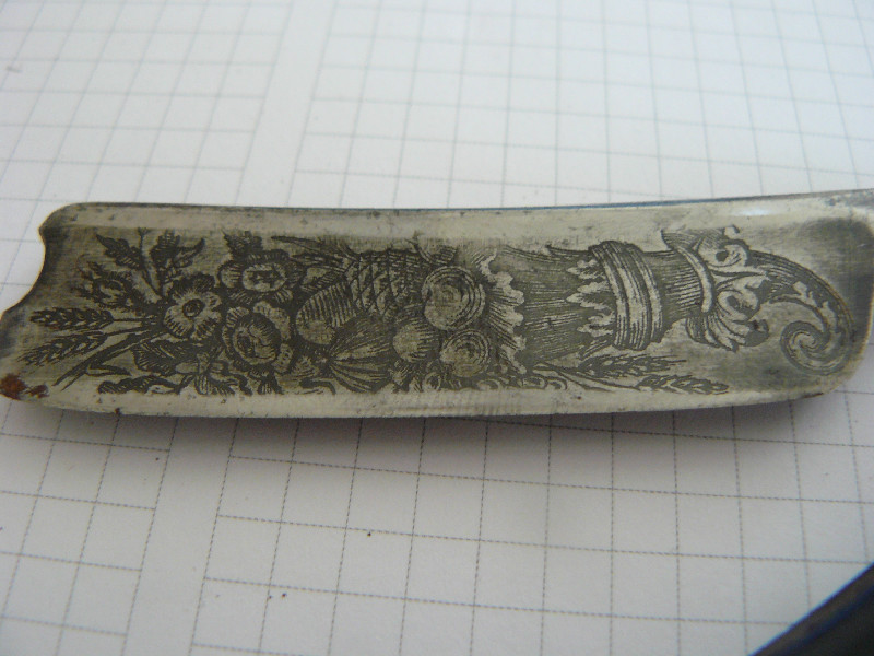 Отличные бритвы, особенно с резьбой по спинке. У меня тоже есть несколько. У одной от старости ручка развалилась, а вот штамповка очень четкая. Надо будет почистить и ручку старинную присобачить.