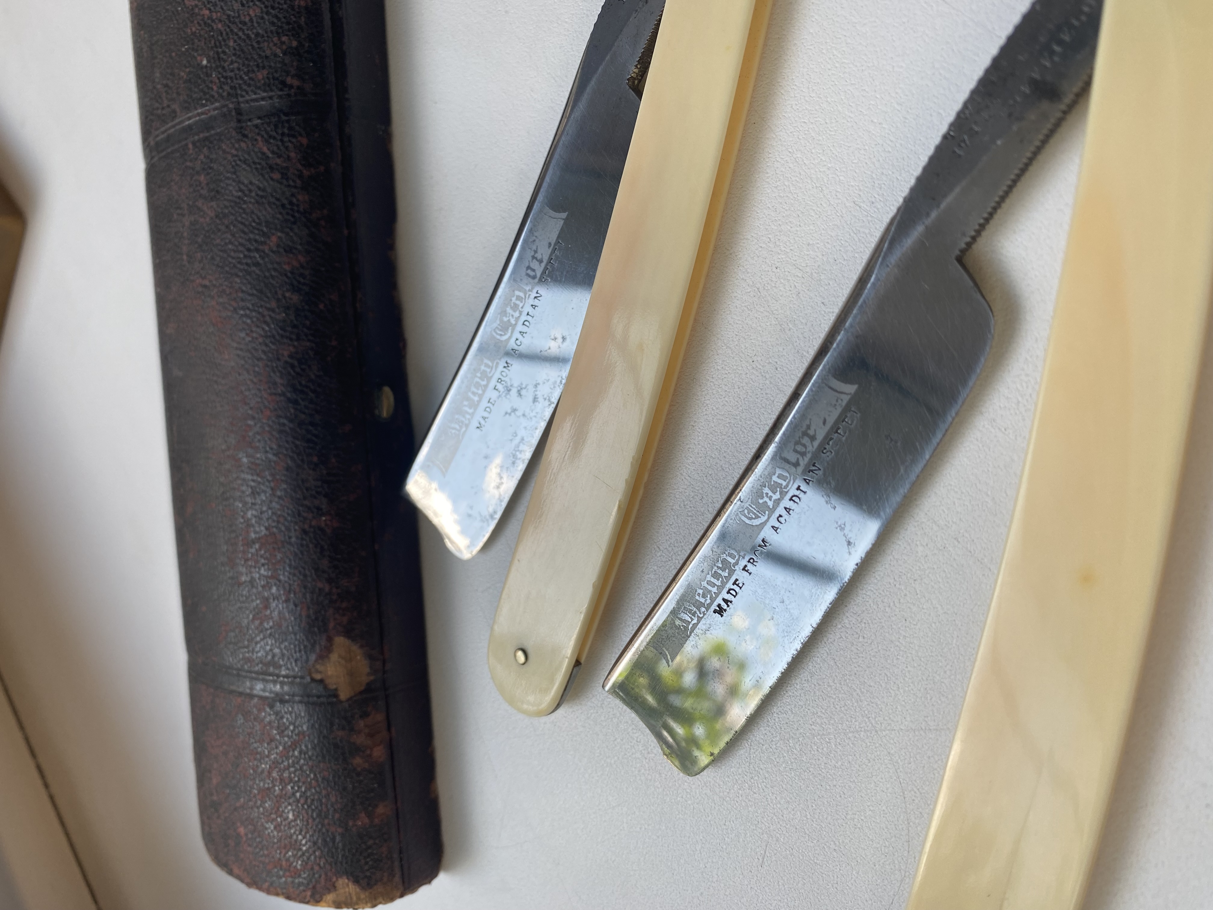На бритве написано TIMOTHY WHITE Co Ltd. А это совсем другая история. Добавлено спустя 2 минуты 56 секунд: Извините, не разглядел обратную сторону... Ремонт опасных бритв, звонить с 11-00 до 23-00, +79267729357, (whats app, telegram, VK), спросить Олега.