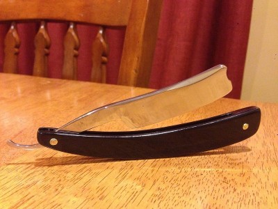 Насколько я знаю, это старая английская бритва из Шеффилда. По словам продавца, это конец 19 века. Но почему она такая "толстая", семь с небольшим мм, я имею в виду толщина обуха? Интересует примерный возраст и стоимость. Рукоять из рога, всего одна небольшая трещинка у пина. Да и вообще, накидайте информации побольше!
