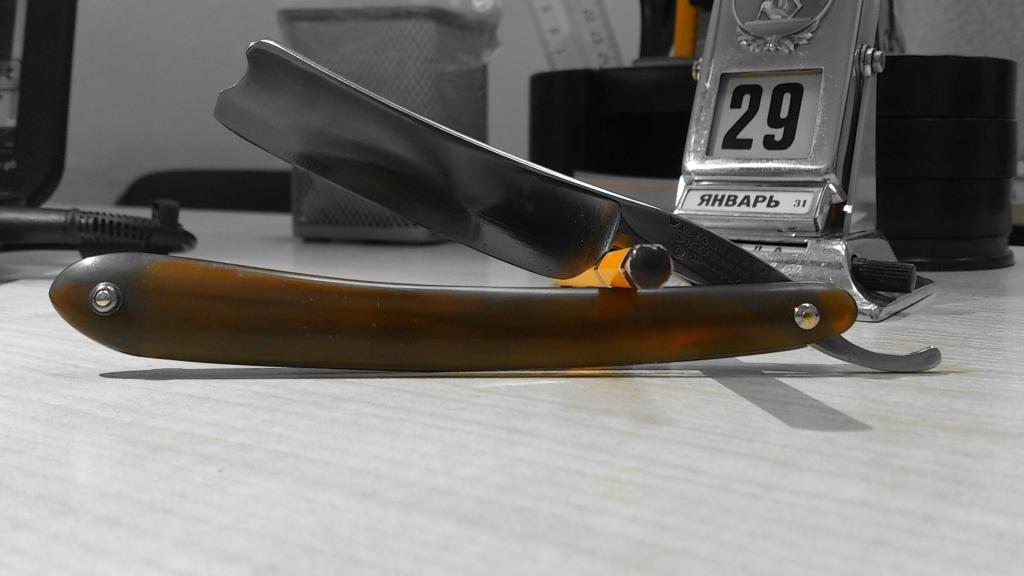 Действительно интересная бритва. Вырез в необычном месте, форма полотна класс. Ручка стоит отдельных восторгов. Лишь бы не рассыпалась от старости.