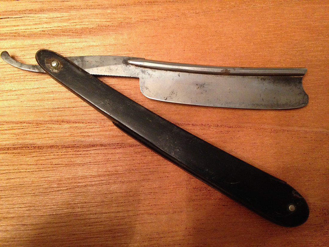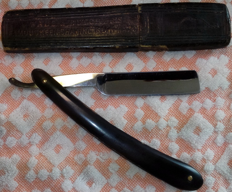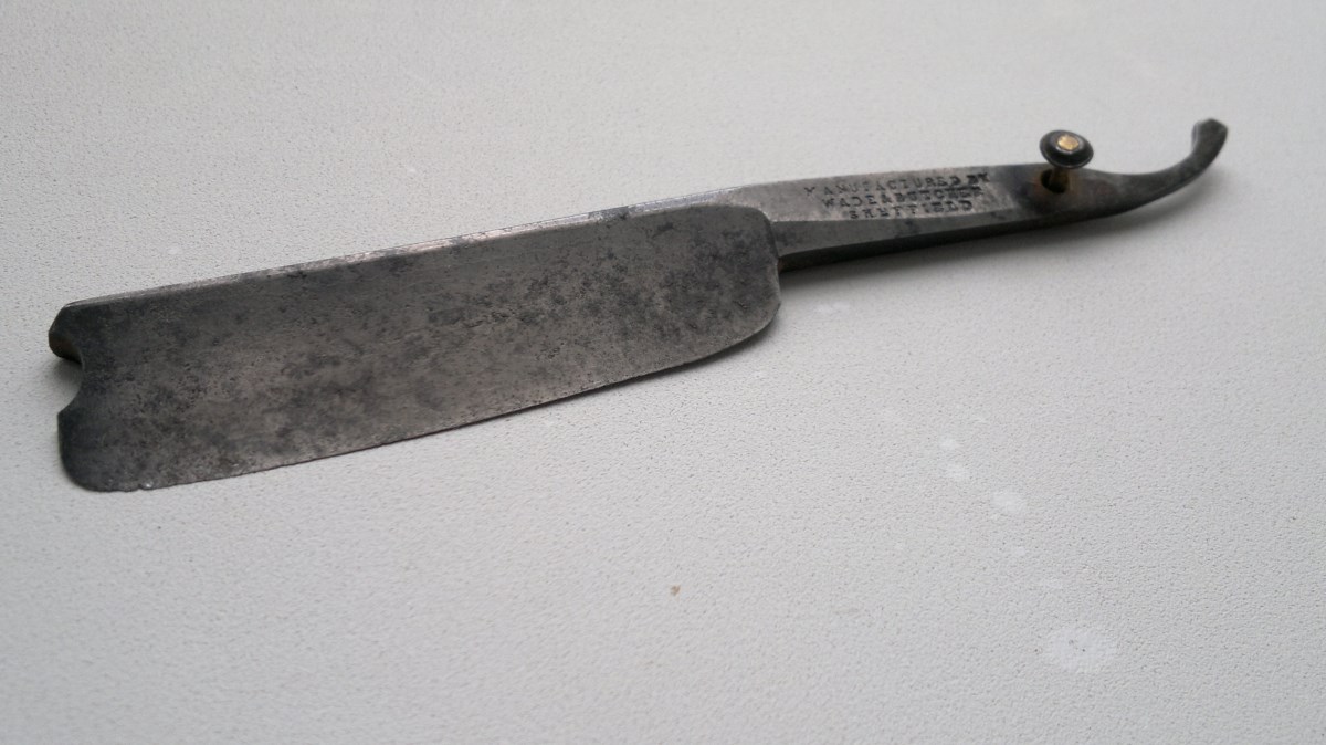 Насколько я знаю, это старая английская бритва из Шеффилда. По словам продавца, это конец 19 века. Но почему она такая "толстая", семь с небольшим мм, я имею в виду толщина обуха? Интересует примерный возраст и стоимость. Рукоять из рога, всего одна небольшая трещинка у пина. Да и вообще, накидайте информации побольше!