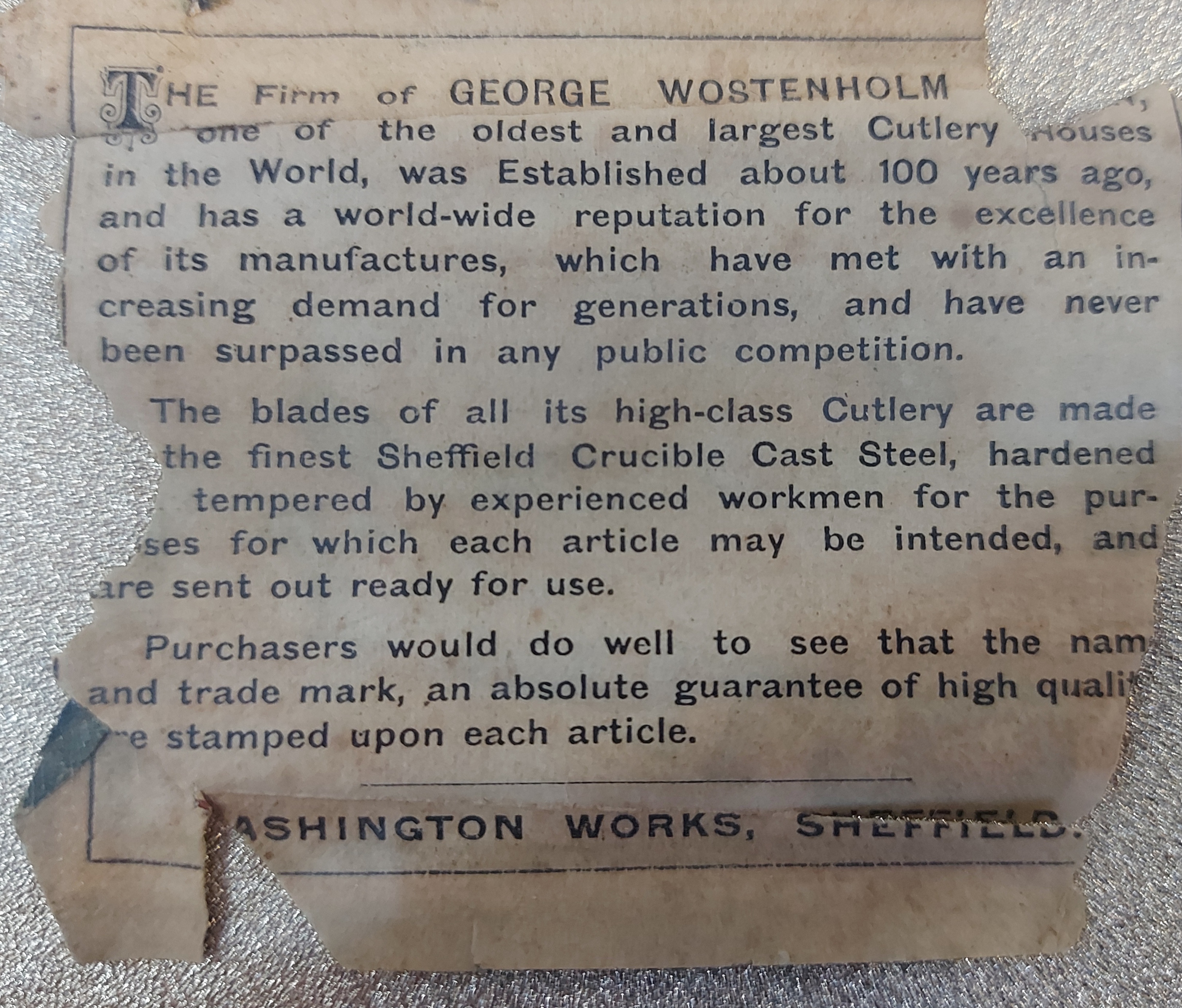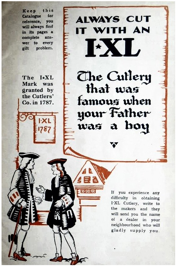 «3 октября 1826 года Джордж Востенхольм стал полноправным членом Cutler's Company и получил собственную торговую марку I*XL; ранее, в 1787 году, принадлежавшая W.A.Smith, эта марка вновь должна была обрести мировую известность.