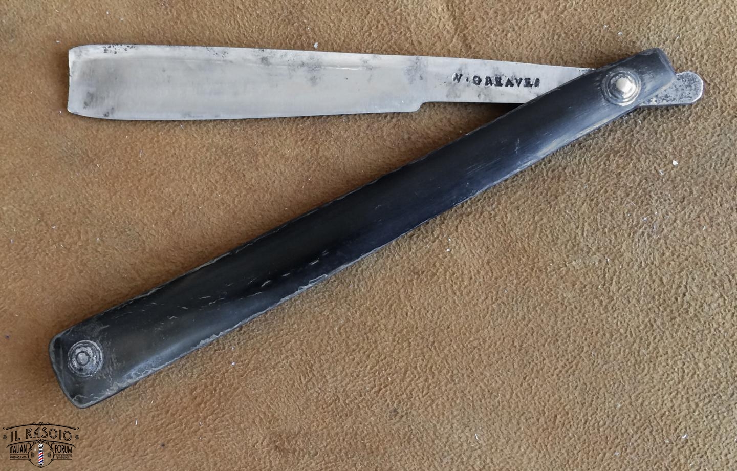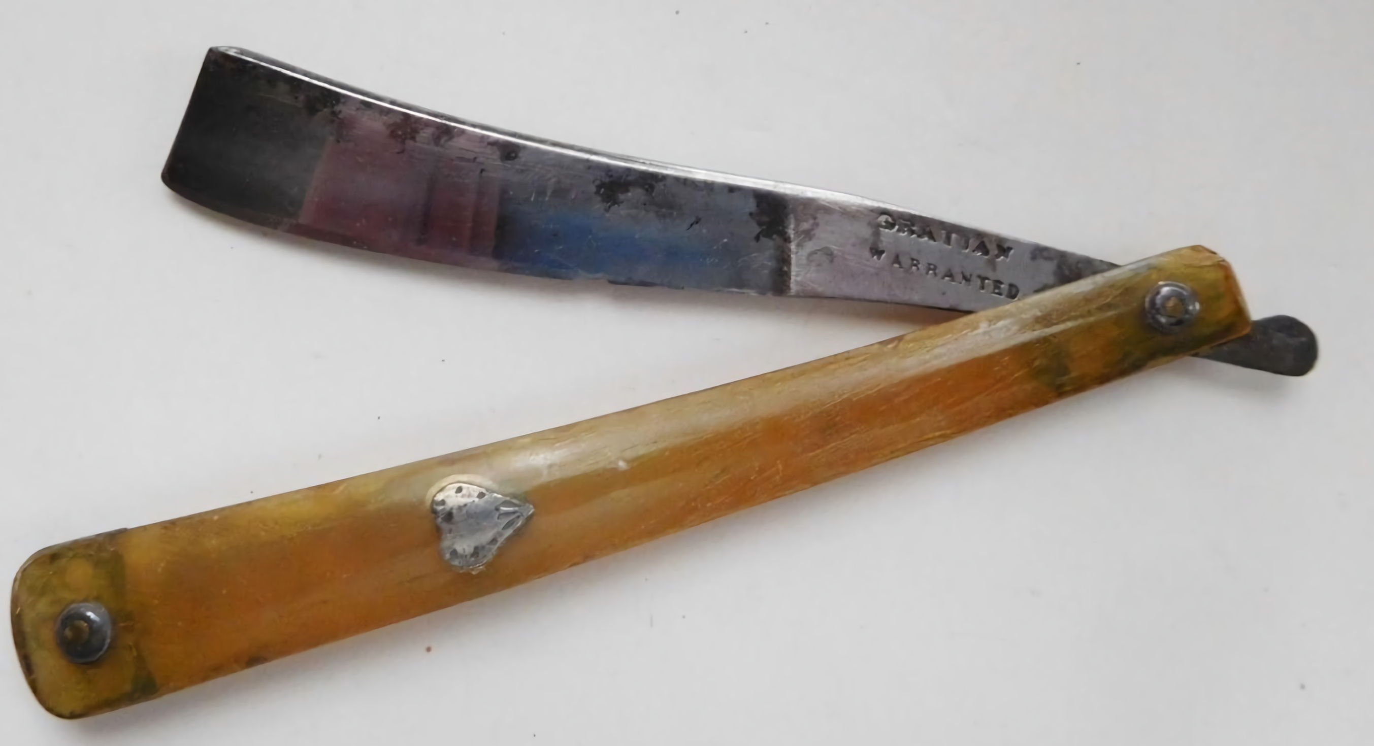 На лезвии бритвы, имеющей своеобразную форму, возле ее пятки находятся слова: «Гарантированный Грациан». Рукоять от глубокого возраста почти обветшала, от оригинала осталось около половины. В центре небольшой орнамент: резьба.
