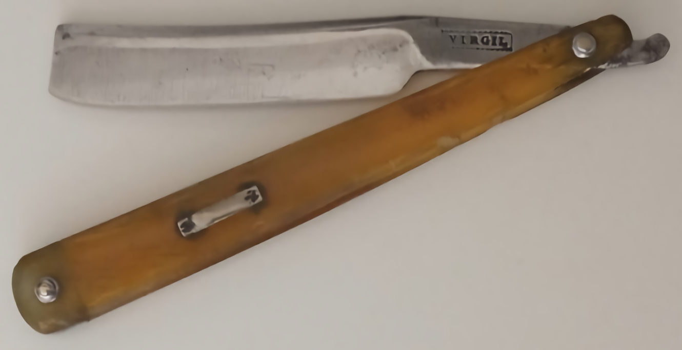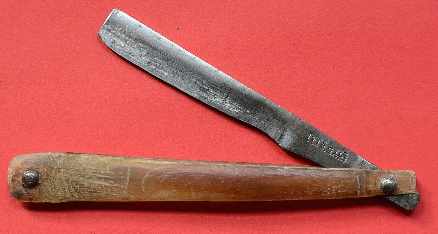 In the early nineteenth century, the Revet family moved to Netherthorpe, Sheffield. By 1825, William Revitt had opened for business in Meadow Street, making razors, pen, pocket, and table knives, and razor strops. He used the ‘VIRGIL’ mark and his razors were made of Damascus steel ‘of superior quality’. By 1833, William Revitt Jun. had joined the enterprise, living in Meadow Street, and seems to have taken over the ‘VIRGIL’ mark in 1837. The firm advertised in 1839.