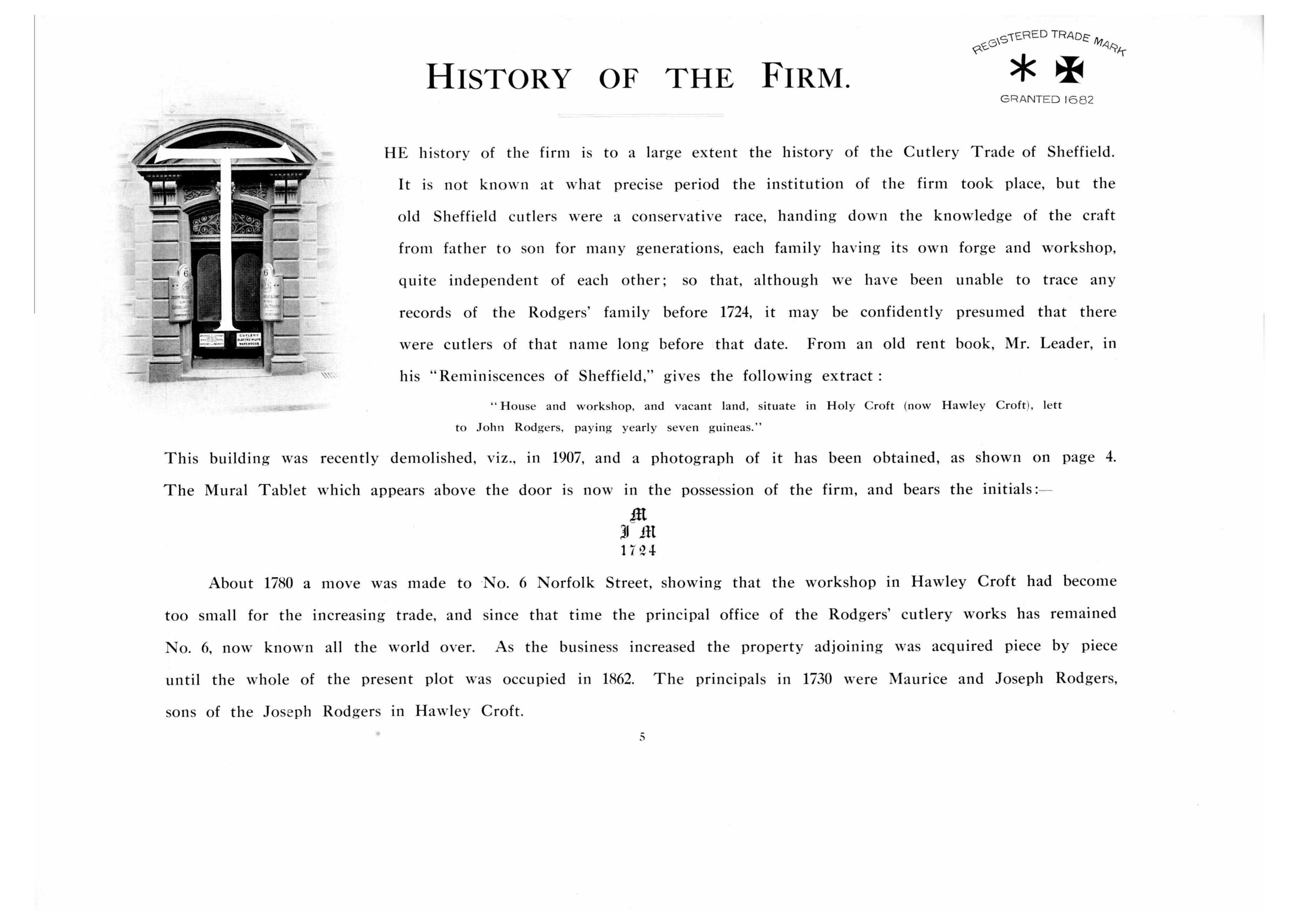 Всемирно известная торговая марка была основана под именем The Cutlers Company в Хеллемшире в 1682 году Джоном Роджерсом. В 1730 году фирма состояла из двух человек, братьев Joseph и Maurice Rodgers (Джозеф и Морис Роджерс), которые жили и работали в Холлис Крофт. В том же году они переехали на Sycamore Street в Шеффилде, но торговля расширялась и они были вынуждены купить и соседние здания, пока целый блок строений, ограниченый Norfolk Street, Milk Street, Sycamore Street и Flat Street не перешел в их владение. Помещения были полностью перестроены, последние изменения были сделаны в 1869 году. Прекрасная арка на Norfolk Street и другие строения компании являются самым старым действующим ножевым заводом в мире. Известная торговая марка компании "звезда и мальтийский крест".