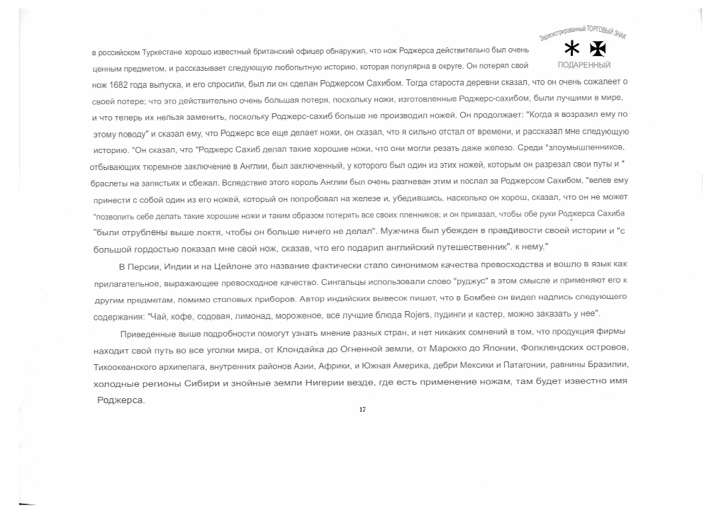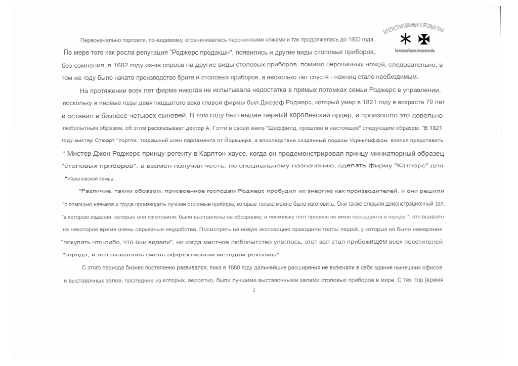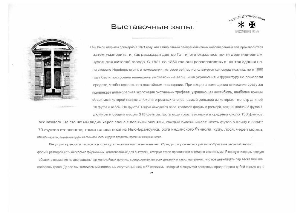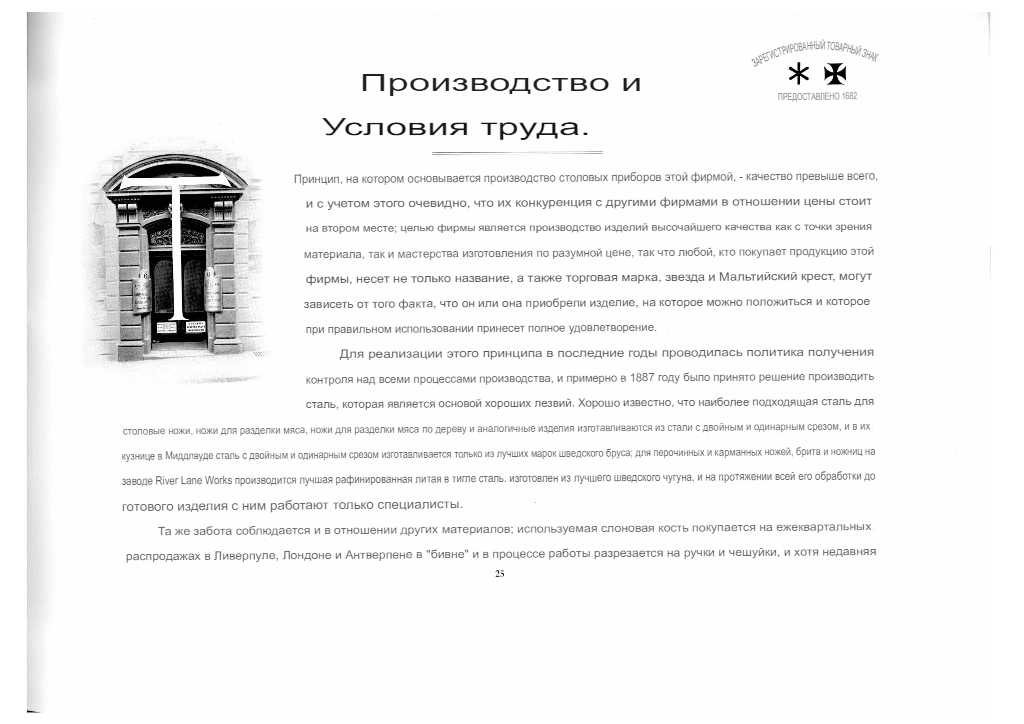 "… На сегодняшний день (напоминаю, что речь идет о 1871 году - примеч. автора) эта фирма имеет около 1700 рабочих, которые были выучены на профессиональном уровне и изготовляют каждую неделю приблизительно 5000 дюжин кухонных приборов, 1500 дюжин карманных ножей, 1200 дюжин бритв и 1200 дюжин ножниц.