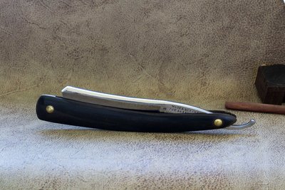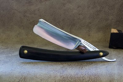 Насколько я знаю, это старая английская бритва из Шеффилда. По словам продавца, это конец 19 века. Но почему она такая "толстая", семь с небольшим мм, я имею в виду толщина обуха? Интересует примерный возраст и стоимость. Рукоять из рога, всего одна небольшая трещинка у пина. Да и вообще, накидайте информации побольше!