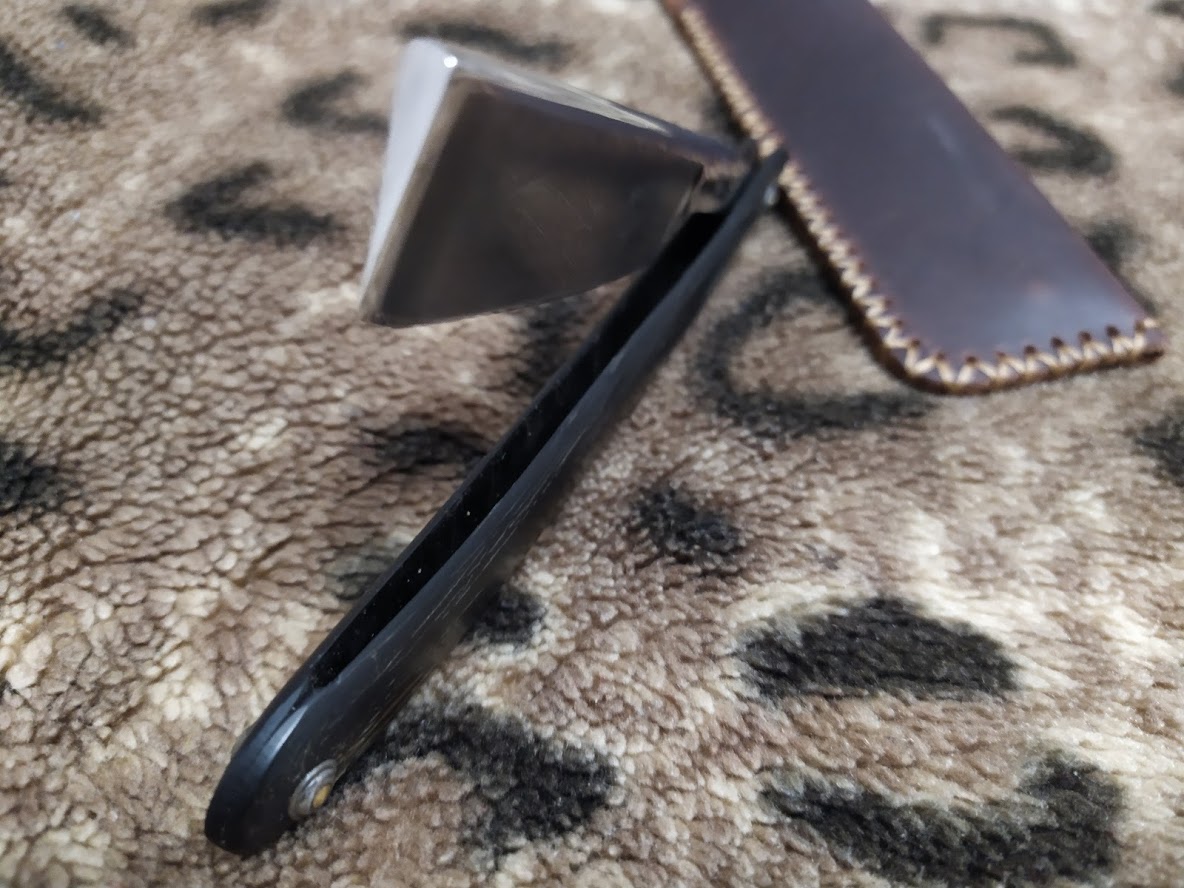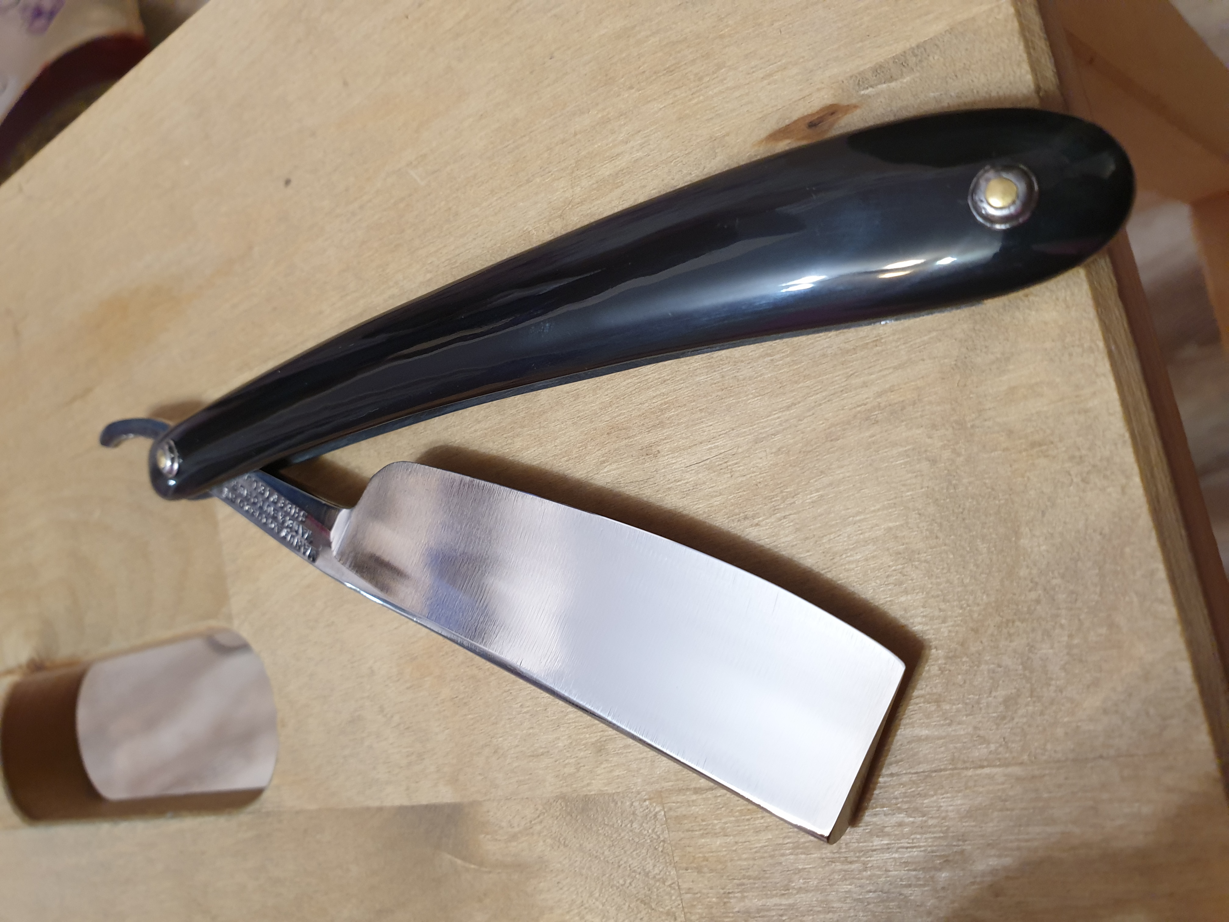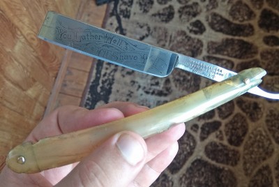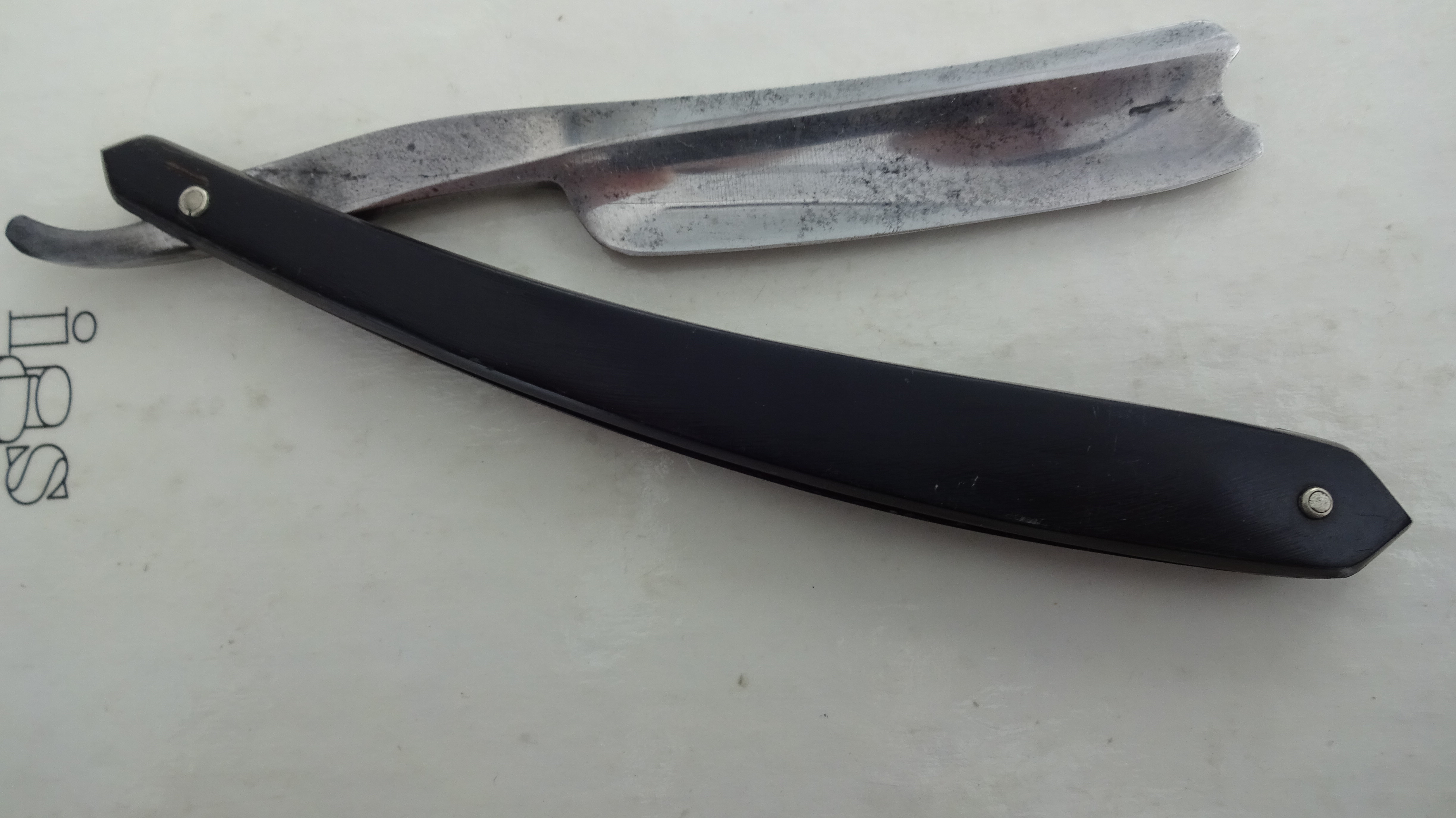 Насколько я знаю, это старая английская бритва из Шеффилда. По словам продавца, это конец 19 века. Но почему она такая "толстая", семь с небольшим мм, я имею в виду толщина обуха? Интересует примерный возраст и стоимость. Рукоять из рога, всего одна небольшая трещинка у пина. Да и вообще, накидайте информации побольше!