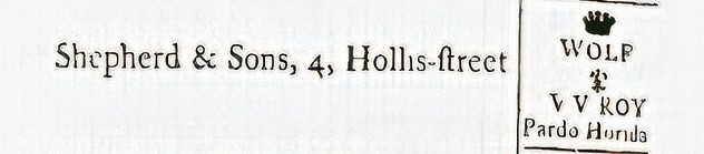 1787, Gales & Martin, A directory of Sheffield: Очень старые английские бритвы (до 1810 года).Shepherd John, WOLF: