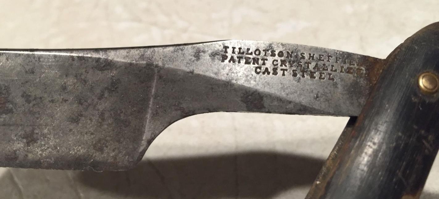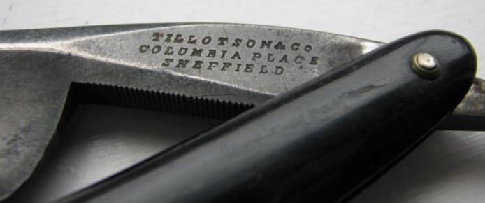 Thomas Sen., Thomas Jun., and William (the latter both bachelors) had died by 1803, so that the two surviving brothers – John and George – carried forward the family name. John may have been associated with John Wreaks in scissors maker Wreaks & Tillotson (active in the 1790s). After his father’s death, John took over the family firm in 47 Coalpit Lane. By the late 1820s, the business had been renamed John Tillotson & Son, merchants and manufacturers of scissors and table knives, butchers’ steels, and dealers in edge tools and files. John became Master Cutler in 1810. During the 1820s, George operated a separate business as a merchant and manufacturer of table knives and scissors in Carver Street. George Tillotson became Master Cutler in 1817. He died on 21 June 1825, aged 47, and was buried in Ecclesall churchyard. His business ceased trading. The brothers had married into the Knowles family of Gomersal (Clay, 1894-6) and George had a son: Charles Knowles Tillotson (1811-1872). However, he spent most of his life (like his uncle) in York Lunatic Asylum, where he died on 1 November 1872, leaving a fortune of nearly £10,000 (Sheffield Independent, 30 July 1853).