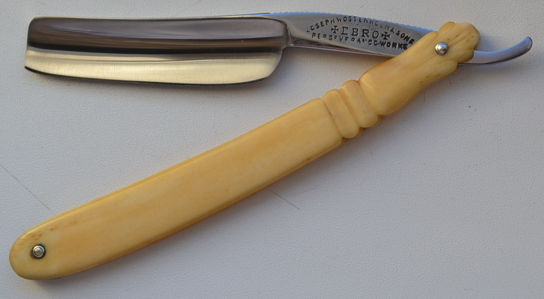 Zelenbakh писал(а):J. Wostenholm & Sons *EBRO* , фирма основана Джозефом Востенхольмом, однофамильцем прославленного изготовителя бритв с трубкой. Существовала недолго, поэтому легко датировать. Уверенная середина 19го века. Выпускались лезвия в форме клина и холлоу граунд. Бритвы EBRO всегда славились отличным мягким бритьем.