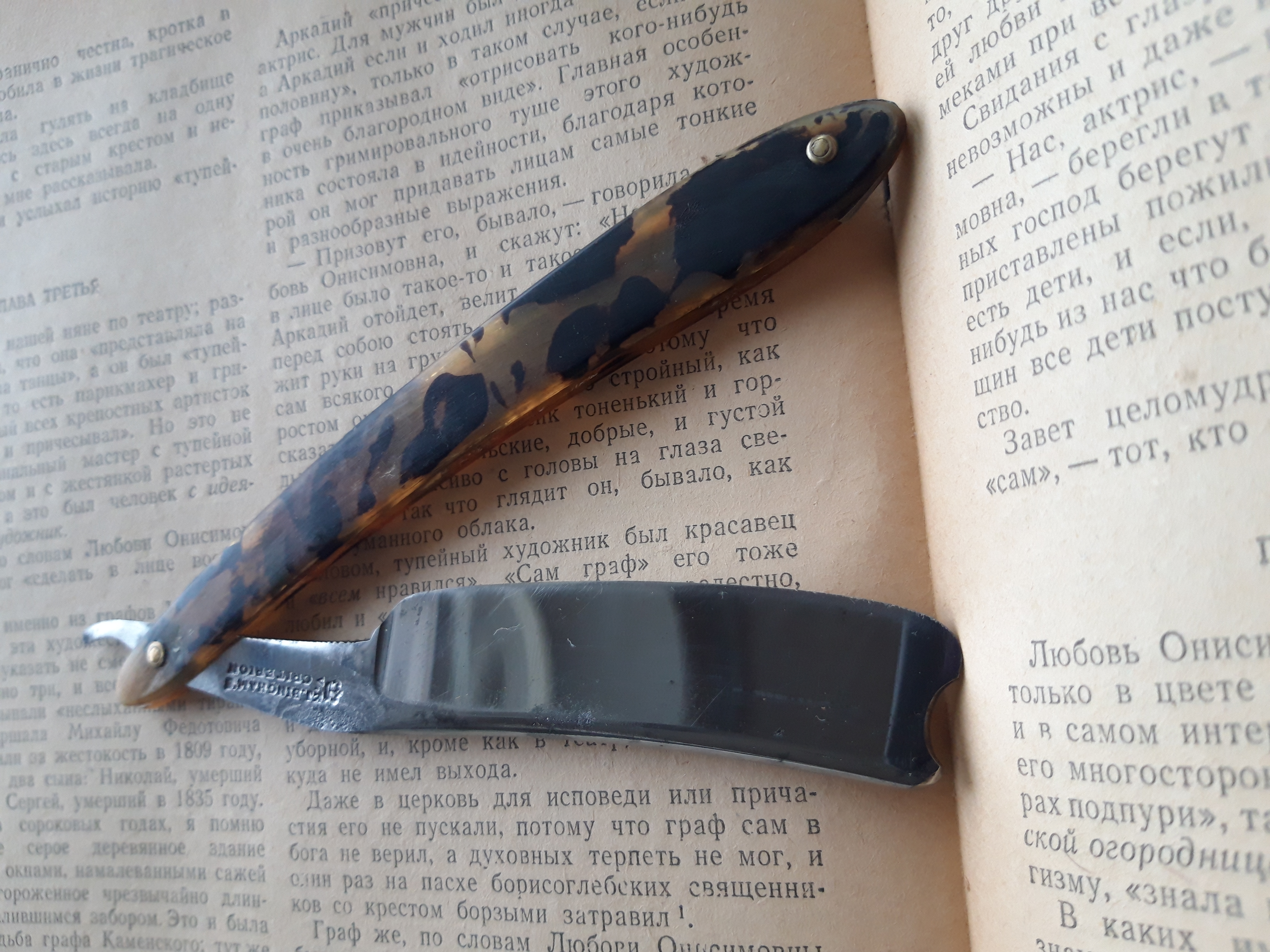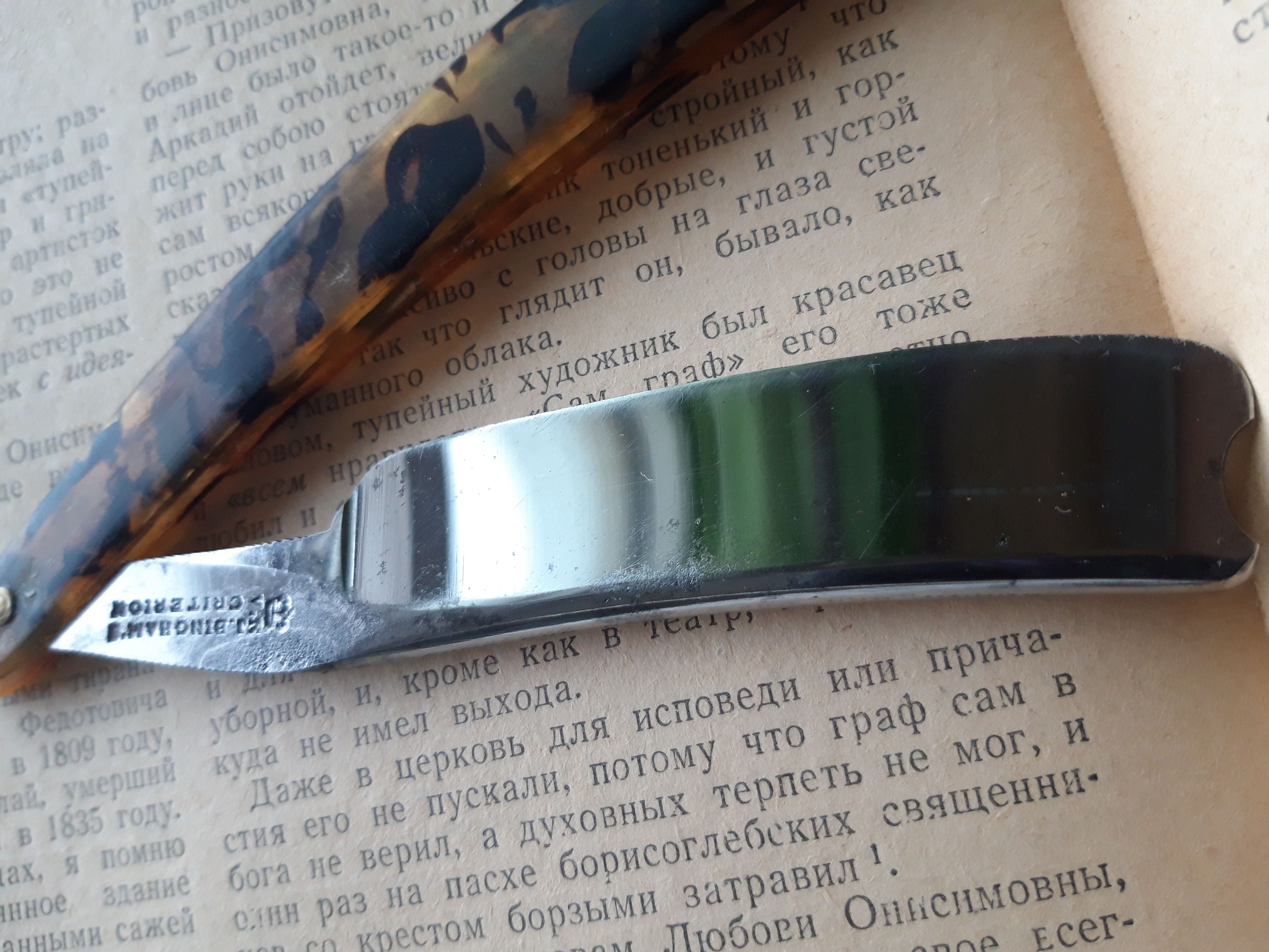 Я показывал клинок и клеймо а не оправку.А она действительно с француза 19 века. Не пропадать же добру. К тому же она не на продажу... бреет классно. Простите великодушно.