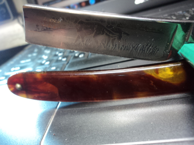 Добыча с барахолкиСтрана потихоньку оживает. Сегодня Гравюра 1959(год памятный для меня), с остатками какого то охотничьего пейзажа(Злодейское убийство тигра). В футляре комплект документов на бритву. Ручку изготовлю.