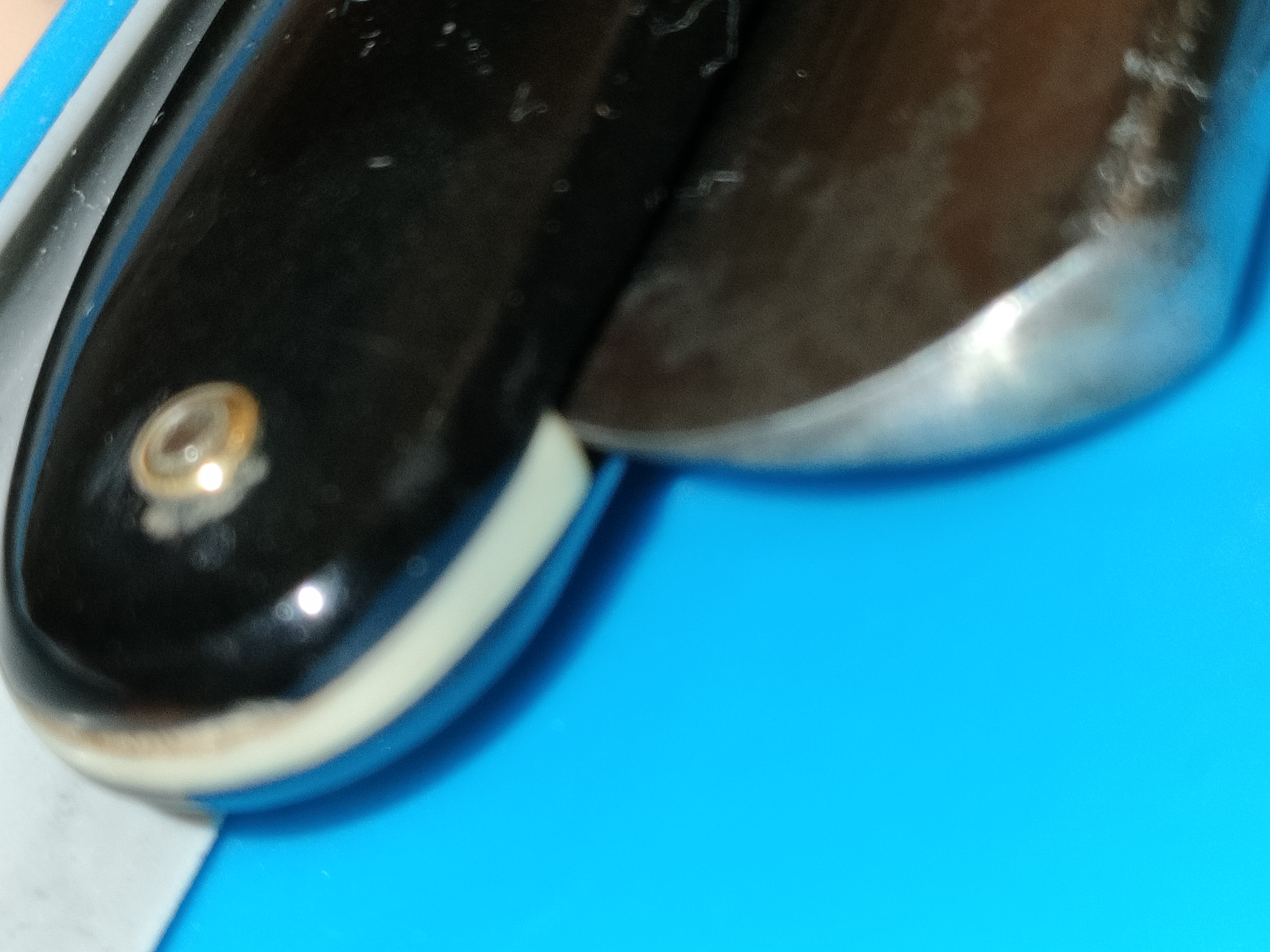 Veritable Dumas ©Пожалуй так. Бритва похоже даже не точеная, я когда взял её первый раз в руки уронил клинок на палец, оказалось пин ужасно расхлябан. Аж похолодел, думаю сейчас кровью все залью, по факту даже не порезался. В защиту продавца могу сказать что он видимо ничего в бритвах не понимает, продал очень дёшево, с доставкой 40 долларов вышло. Да 20 вернули по спору. Я и брал то дешёвую чтоб поэкспериментировать с восстановлением, да попробовать заточить как смогу на обычных китайских камнях. В результате, уж простите мне такой вандализм, наточил что бреет волосы на руке, на лице не пробовал Огромное спасибо за информацию