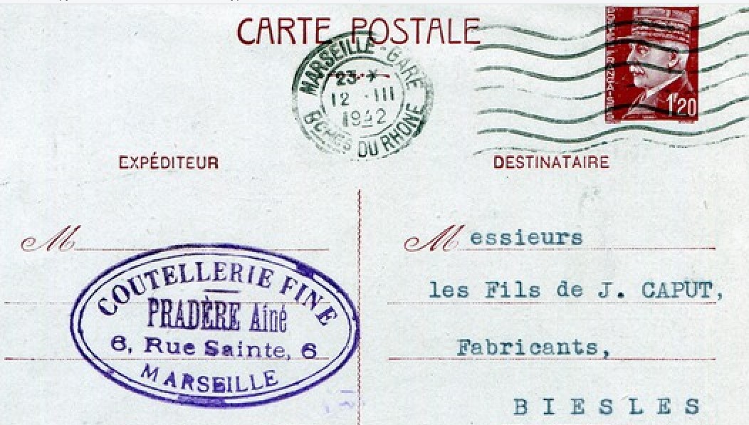 PRADERE AINE . 6, rue Sainte, MARSEILLEПервая реклама этого магазина (или бизнеса ножовщика PRADÈRE AÎNÉ) встретилась в газете Le Petit Marseillais, 4 января 1896 года: