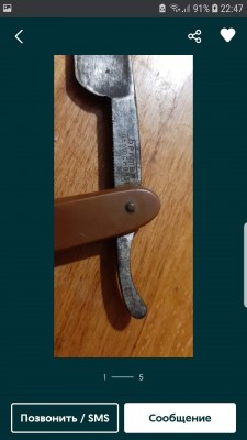 Добыча с барахолкиА кто говорит,что с бритвой что то не так?Фото не совсем информативное ,так как сильно затемнен клинок.Но,форма лезвия оригинальная,следов уточки на обушке не видно.По всей видимости или непользованная,или немного б.у.Если ещё и клинок сам целый и чистый от коррозии,то можно сказать,что бритва неплохая.Какой то скол у носика присутствует и если это не трещина,то это исправимо.Нужны нормальные фото,для окончательного вердикта