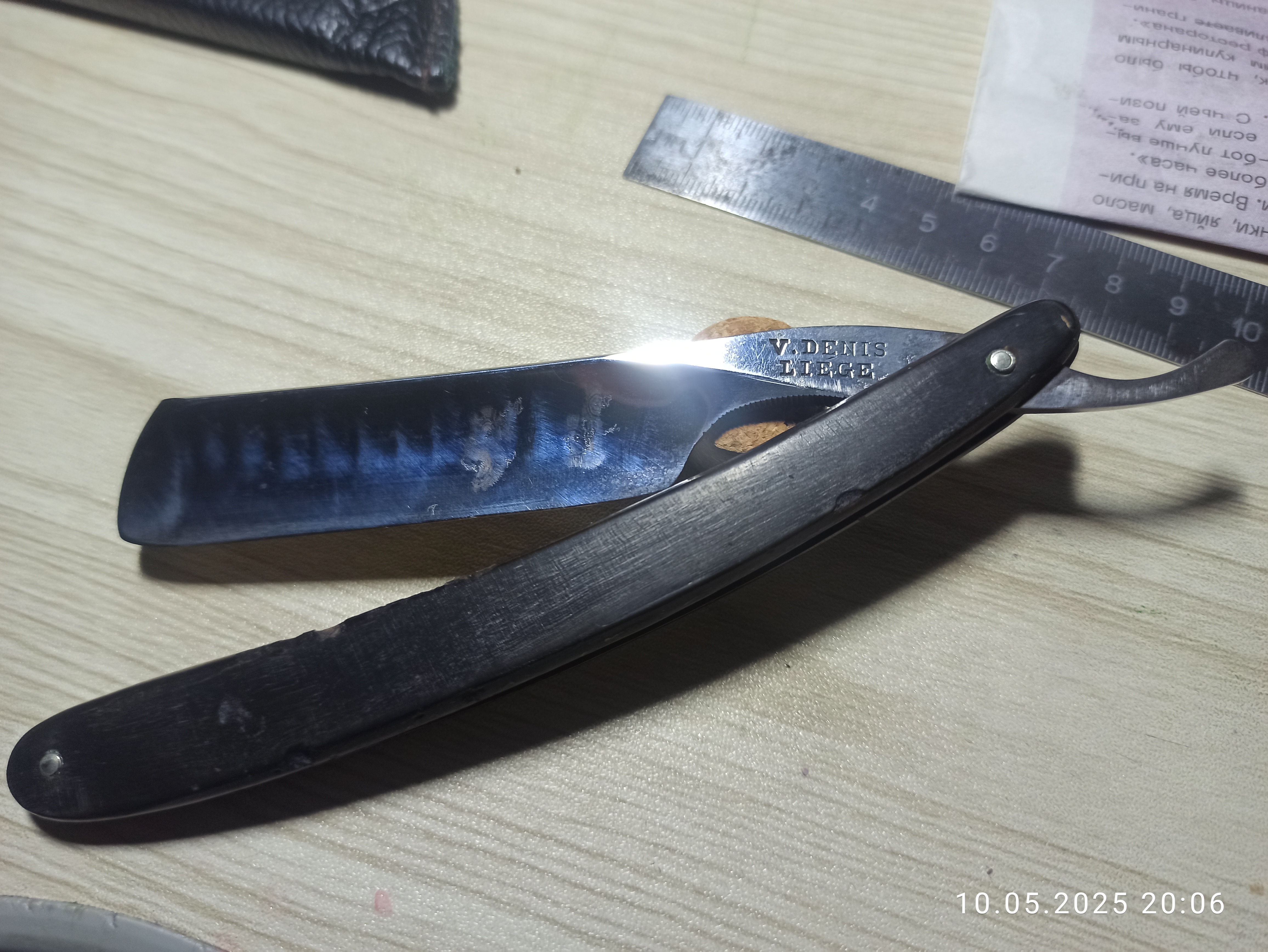 Форма бритвы и клеймо очень похоже на Greis & Co viewtopic.php?p=150215#p150215 А в Льеже был производитель или продавец весов V. Denis. Возможно его сопутствующая "сувенирка" 1920-30е года