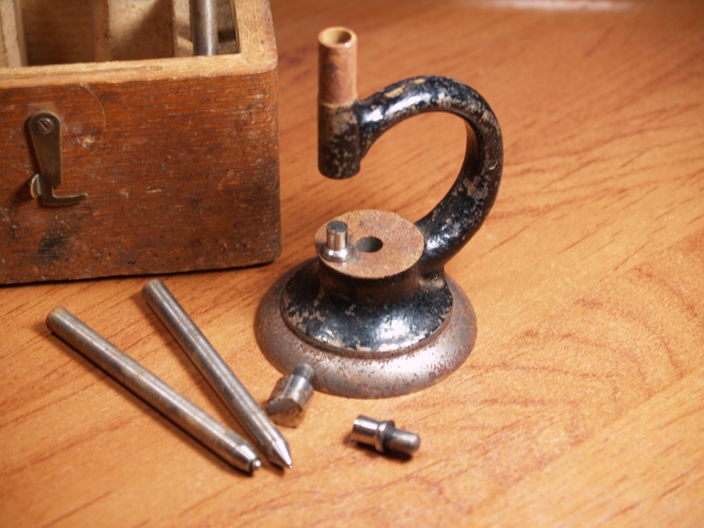Re: Добыча с барахолкиА это, как оказалось, не потанс. Это инструмент для запрессовки каких то подшипников для настенных часов. Пуансоны подпружиненые.