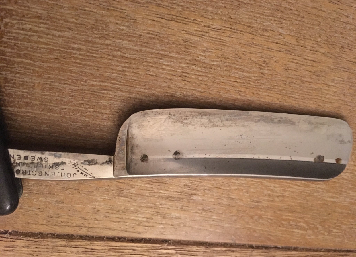 Добыча с барахолкиСамый огонь - Энгстрём. Тама ручка родная из чёрного дерева. А сам клинок тоненький такой, но крупный (21мм) и увесистый. И улыбка такая лёгкая скандинавская. «Поющий» клинок. Очень прикольный. Затачивается очень приятно - была у меня такая - подарил. Эту оставлю себе
