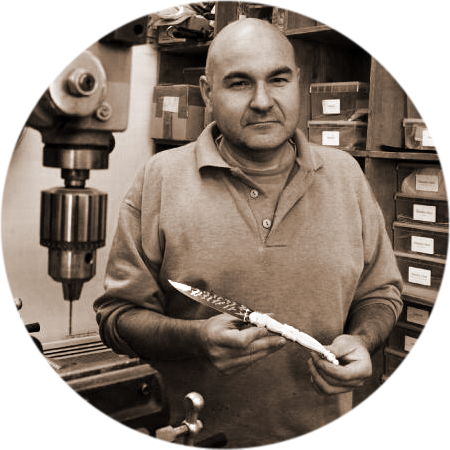 Со временем он усовершенствовал эту профессию, которая стала настоящей страстью, и в свободное время он занялся скульптурой и изготовлением исключительных ножей.