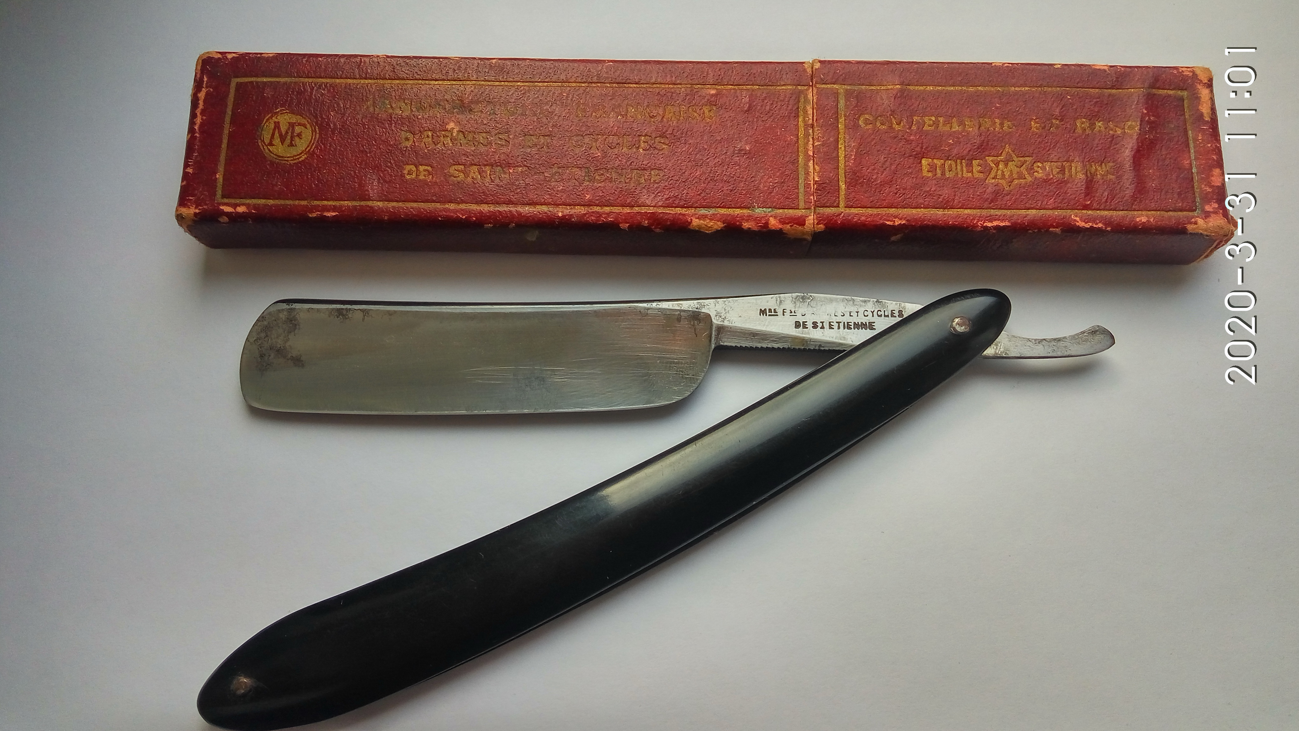 Ну и собственно подтверждение: По "MF" - возможно это "Middle France" (вроде как Центр Франции). Ещё инфа (на французском) на конверте от лезвия : "LAME DE RASOIR FRANCAISE ETOILE MANUFACTURE D'ARMES ET DE CYCLES DE SAINT ETIENNE LOIRE" (...производство оружия и велосипедов... - если переводчик не врёт