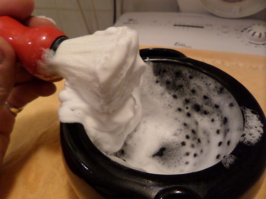 Ух, как щас расскажуууууу! Расскажу про то, как получить качественное и приятное бритье. Приятность ощущений зависит в первую очередь от подготовки к процессу. Я этого раньше не понимал и имел несколько неприятные ощущения когда уделял недостаточно времени подготовке. Теперь по порядку, что и как я рекомендую делать. Перво-наперво обзаведитесь скаттлом! Поверьте, с этой штукой приятность взлетает до небес Так, со скаттлом разобрались, теперь та самая длинная подготовка. Перед бритьем, шерсть надо размягчить. Я пробовал много чего. И горячее полотенце и прешейвы и даже масло. Все это полная хрень! И совершенно не нужно. Полотенце размягчает в основном кожу - легче порезаться. Прешейв... хм.. кроме выжги-себе-глаза-ментолом я других эффектов не заметил. Масло - буээээ. Бритву потом умрешь отмывать и ощущения сальности не понравилось. Все что нам надо, это... мыло и помазок. 1) Замачиваем скаттл с помазком в проточной горячей воде из крана, минуты на 3, пока правим бритву на ремне. 2) Несколько раз умываемся теплой водой. Отжимаем помазок, не слегка но и не досуха. Несколько раз елозим по мылу до появления крупных пузырей, расплющиваем пучок на мыле и несколько раз проворачиваем вокруг вертикальной оси. Что бы собрать как можно больше первой пены (pervyach?) 6) Когда вы понимаете что пена достигла состояния сметаны класса "ложка стоит", вы излишки пены с помазка смазываете обратно в скаттл. 7) Далее, набираем в помазок немного горячей воды и повторяем п.5 Тщательно повторяем, до сметаны средней крепости. ЗЫЖ Все вышенаписанное, исключительно и абсолютно мое личное мнение, на истину не претендующее