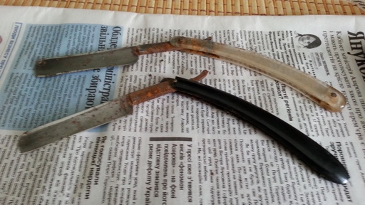 Просил через знакомых найти, а они наверняка есть, бритвы, которые остались от пра-прадедов. Захотел попробовать сам восстановить. И вот приволокли три бритвы, одну даже не фотографировал, состояние плачевное, а другие две, СТИЗы 53 и 58 года соответственно, фото ниже.