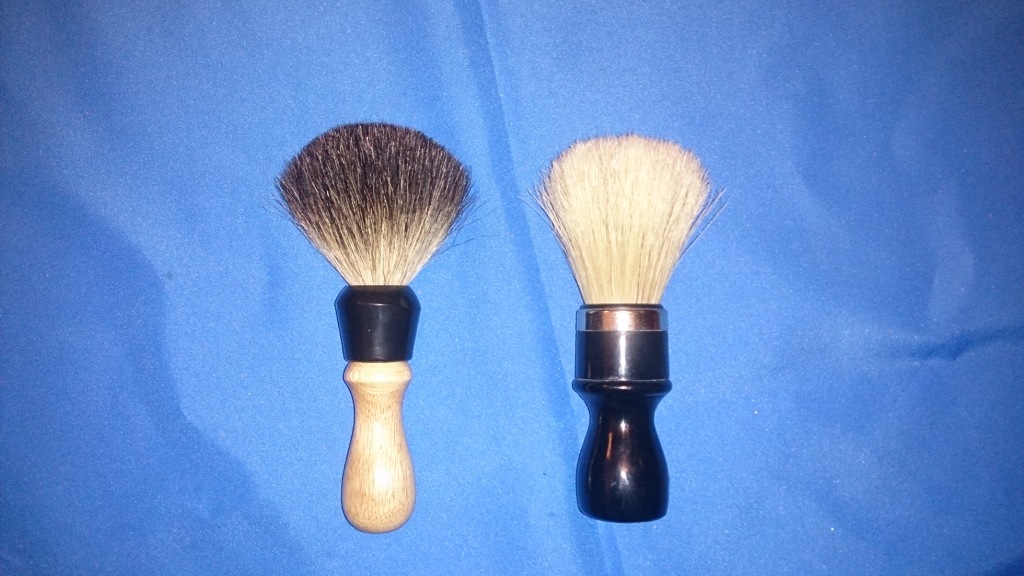 Ремень. Я думаю многие встречали ремни компании Illinois razor strop Chicago, попадаются они на всех торговых площадках посвящённых "влажному бритью". В принципе логично, цена на ремни штата Иллинойс невысока (в районе 40 долларов) да и по качеству их можно отнести к группе товаров широкого потребления. Я заметил что в русско-говорящем сообществе любителей бритья клинковой бритвой как правило первым (и основным) становится ремень фирмы, компании..? Вообще то на этих немецких(?) ремнях может быть написано что угодно, и DOVO и DORKO и Boker и Muhle, даже Exporter solingen. Надеюсь вы поняли о каких ремнях идёт речь, если что, я приложил фото. В общем у нас (у кого это, у нас? Может ты ещё и в "этой стране" живешь?) основными ремнями яв-ся немцы "И вашим и нашим", а у западного сегмента первым ремнём как правило становится Chicago Illinois. Вот и я решил приобщиться, уж больно вид у него завлекательный, прям как в старых барбершопах, широкий, тёмно-алого цвета, с глянцевой поверхностью, в общем полная противоположность моим предыдущим ремням. Но ближе к делу. Главный плюс этого ремня что он работает, я не могу точно сказать насколько хорошо он правит, лучше или хуже моего основного ремня, он просто правит и всё. И я доволен результатом. Может быть это за счёт его глянцевой поверхности, не зеркало конечно, но очень похоже на мой основной ремень, кстати у него эффект глянца появился только после выработки, на неюзанном ремне поверхность была матовая, как будто припудренная. Длина рабочей части 44 см, ширина 6.4 см. Я заказал модель без ручки, так как не владею информацией о качестве прошивки, оторвётся - останутся некрасивые дырки от ниток на коже. Особо хочу отметить возможность разборки ремня, благодаря этому я отделил льняную стропу (надпись на стропе из ткани Linen) дабы совершить так называемый break in, в силу скудности словарного запаса, русский эквивалент этому термину подобрать не могу. Ну, наверно можно сказать что стропу из льна надо "разбить", уработать, так как поставляется она твёрдой как доска (нет, серьёзно, кожаная сторона была эластичней чем лён!). Так что на фото ремень только с кожей, льняная часть отмакает (и периодически отбивается). Из косяков, на обратной стороне кожи имеется трещина, на рабочей поверхности с левой стороны какие-то пятнышки на пол тона темнее цвета самой кожи (см. фото). На работоспособности это никак не сказывается, если будете брать подобный ремень, желательно повертеть в руках. Помазок. Под стать ремню я взял "барберский" помазок. От помазков домашнего использования парикмахерские отличают длинная ручка и невозможность стоять щетиной вверх (я сделал сравнительное фото с типичным представителем семейства "ванных помазков"), впрочем это я так определил для себя помазок цирюльника, не принимайте мои слова за истину. Я уже покупал вариацию на тему "помазок из барбершопа", ей стала кисть Omega 10098. Новый помазок сделан скорее всего китайцами по заказу компании Colonel Conk (полковник Конк). Рукоять лакированое дерево, щетина барсук, "гнездо" щетины из странного пластика. больше напоминающего твёрдую резину. Запах нового барсука специфический, впрочем после трёх-четырёх промываний туалетным мылом он почти исчезает. Щетина у помазка полковника ОЧЕНЬ мягкая, как кисть для рисования, не скажу что это плохо, мой отец например очень уважает мягкие помазки, но конкретно этим я могу бр
