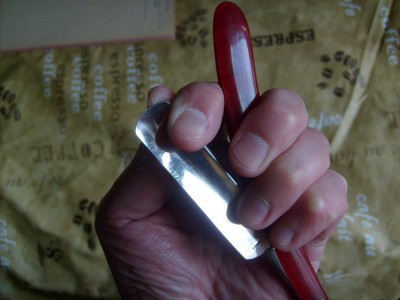 Одна тонкость, впрочем, есть. Мне пришло в голову это только сейчас. Это хваты для моих, относительно небольших пальцев, которые позволяют мне держать бритву так. Я допускаю, что люди с длинными, толстыми пальцами при одной попытке взять бритву таким образом, ОСНОВАТЕЛЬНО их порежут.