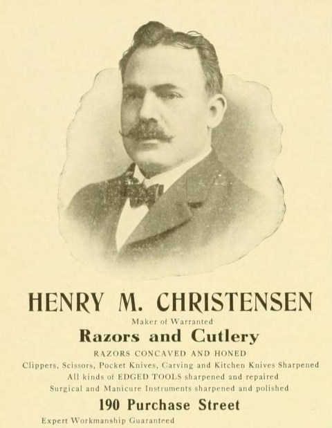 Генри М. Кристенсен приехал в США из Дании в конце 19 века. Уж не знаю где он научился профессии, но на новом месте начал производство бритв.