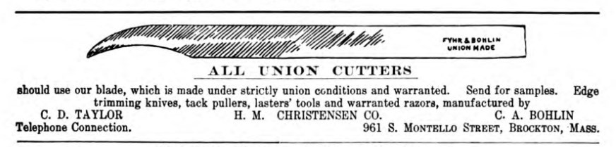 Первое упоминание о нем нашлось в журнале Power за 1902 год. В местечке Campello он стрит новую фабрику. Кампелло это пригород Броктона (Brockton), когда то был отдельным поселением, но название осталось до сих пор по названию железнодорожной станции. Дальше следы раздваиваются. В Броктоне остается завод, похоже с партнерами Fyhr & Bohlin, совместная реклама была с 1905 по 1910 годы, причем сначала, в 1905 году, был Taylor и Bohlin. Spoiler Show Spoiler Show После 1916 года, его следы теряются, но в 1919 Кристенсен появляется уже в новом, но тоже соседнем городе Providence, где создает новую фирму, но уже с другим партнером, Henry R Nelson. Фирму назвали "The Bossing Razor Co" и продолжили делать бритвы. В 1936 году Кристенсен умирает, фирма Bossing Razor остается за партнером и просуществует до середины 1950х годов. Spoiler Show