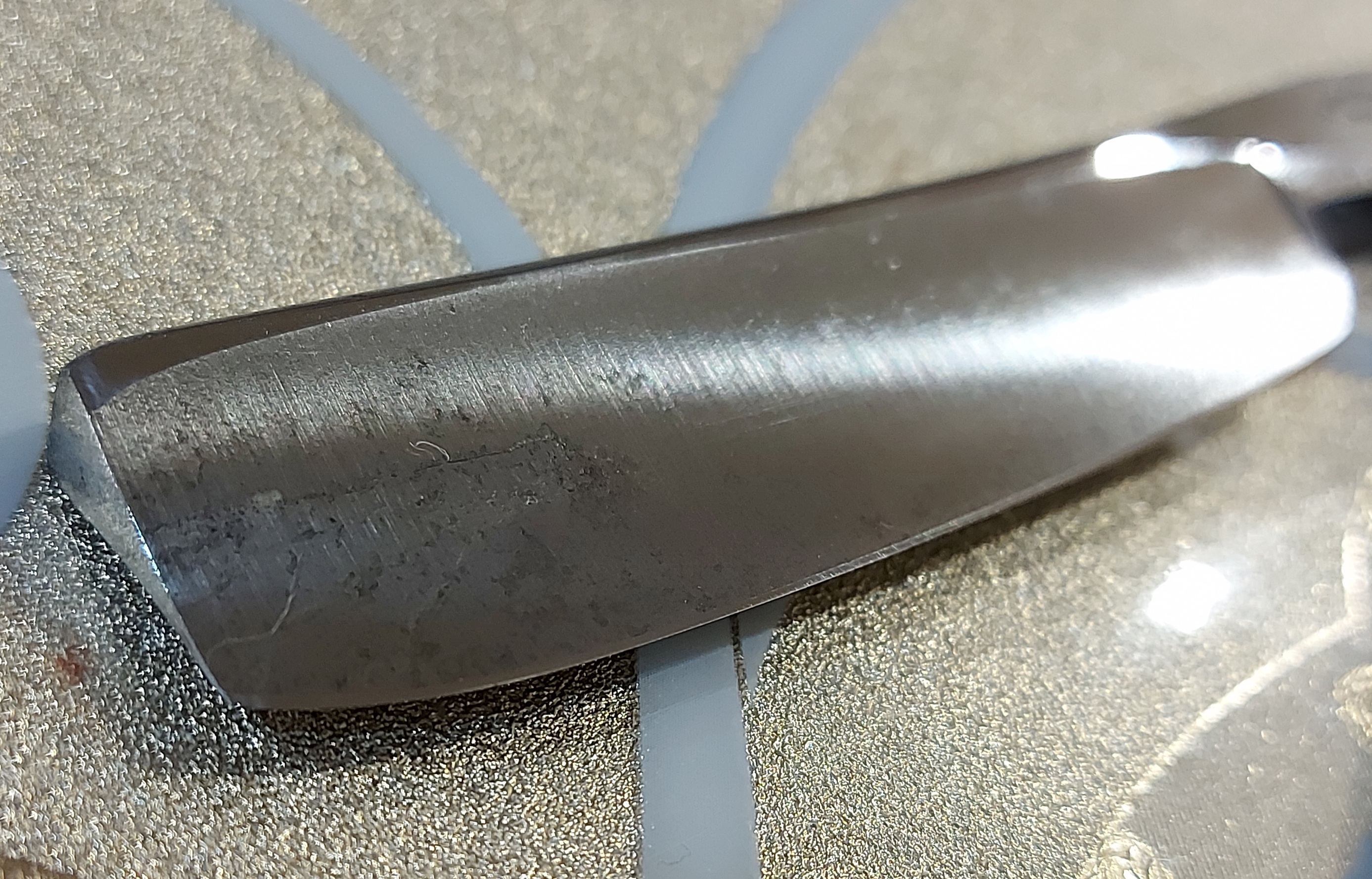 Тяжелый полуулыбчивый клин 20+ мм. Судя по форме и отличной геометрии клинка, качеству стали, предположу что бритва сработана в середине 19 века. Никакой детальной информации по производителю не нашел.Буду благодарен за любую информацию.