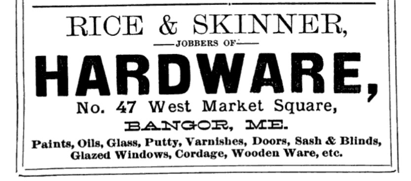 Данные из бизнес справочника города Бангор за 1882 год: Rice & Skinner бизнес двух товарищей Rice G Irving и Skinner Charles C .