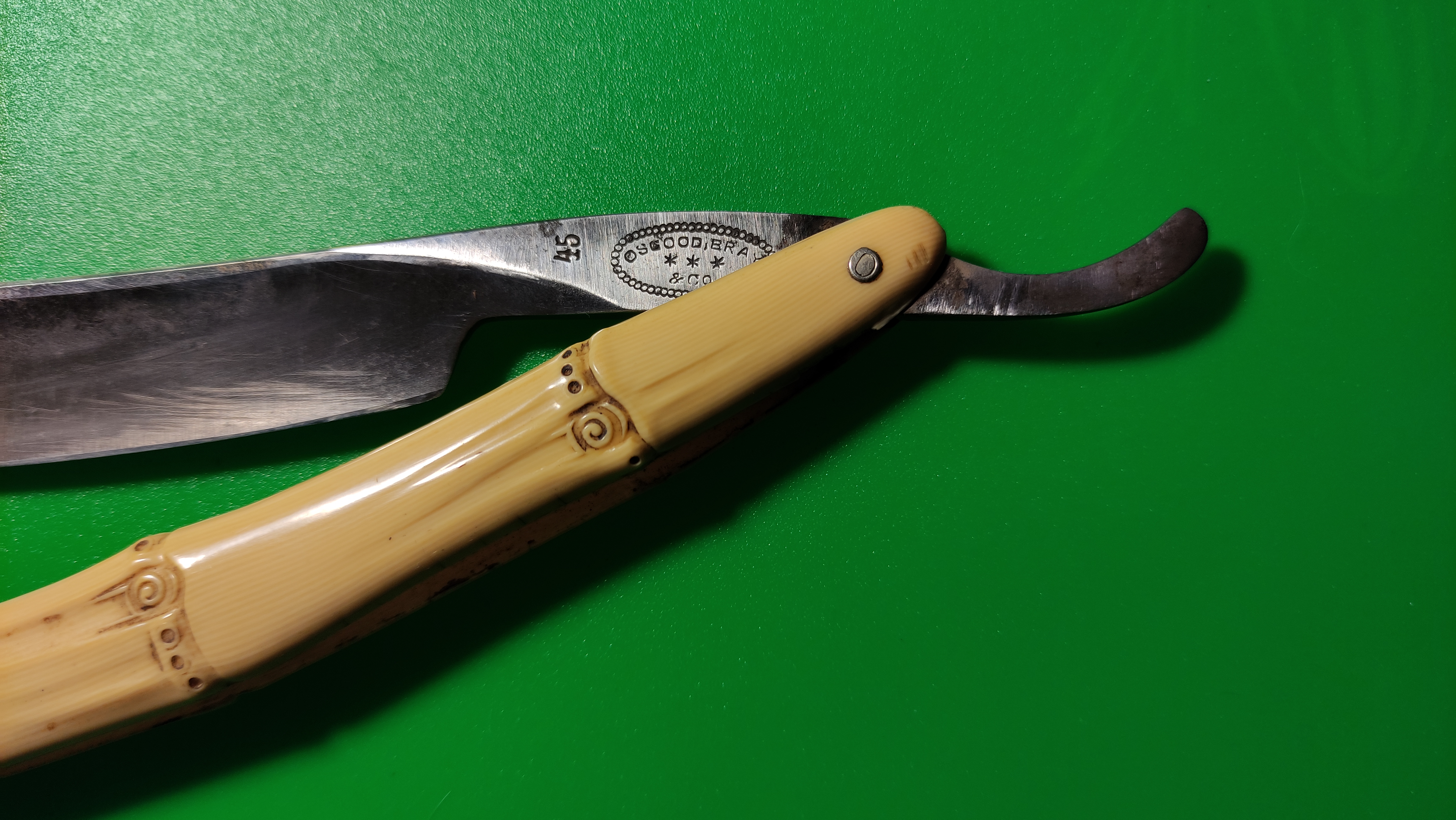 Краткая история: Osgood Bray & Co. была оптовой торговой фирмой столовыми приборами в Бостоне с конца 1800-х по 1905 год, известной своими бритвами, ножницами, перочинными ножами и маникюрными инструментами.