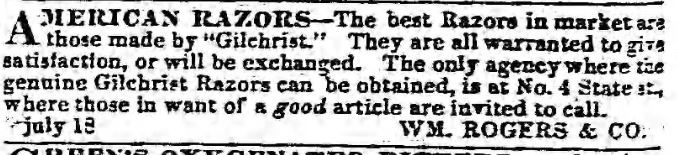 В старом справочнике за 1859 год "New Albany Directory and Business Mirror", Уильям Гилкрист значится как продавец бритв, ремней и многих других товаров. Так же есть сведения о том, что Гилкрист сам являлся производителем опасных бритв. Примечательно что предприятие Гилкриста находилось в тот момент в городе Джефферсонвилл, штат Индиана.