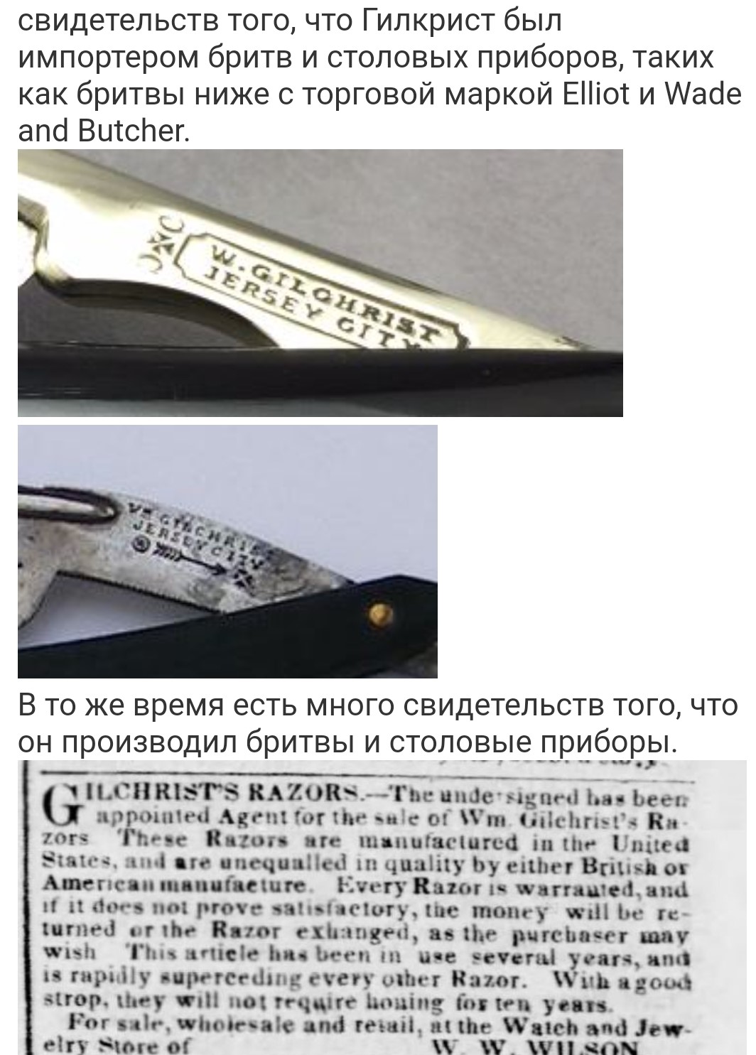Возможно, но не имеет доказательств, что бритвы со штампом Wm.Gilchrist были изготовлены Уильямом-старшим, а Ramapo - Уильямом-младшим.