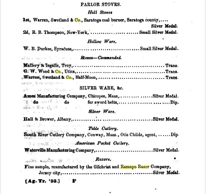 S&T, как всегда дельные замечания. В справочнике за 1859 год "New Albany Directory and Business Mirror" Wm. Gilchrist не указывается, а упоминается в качестве производителя бритв, для истории форума добавлю скрины: