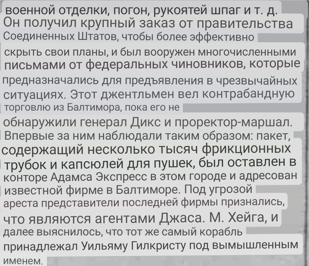 Дальше во времена Гражданской войны в США для Гилкристов наступают тяжелые времена, темные истории с поставкой оружия Конфедерации (Югу).
