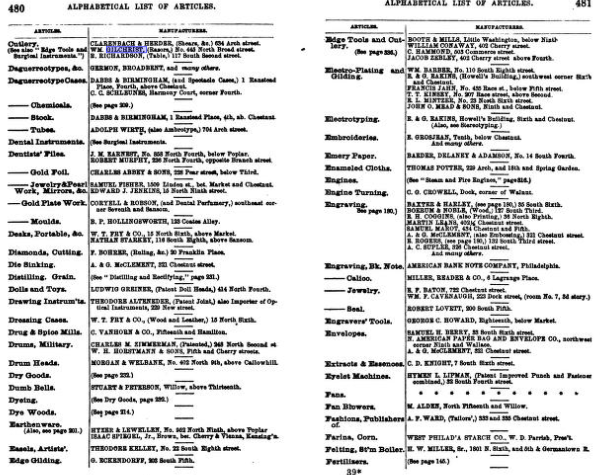 По адресу местонахождения Wm. Gilchrist мало подтвержденной информации, в справочнике "Philadelphia and its manufactures : a hand-book exhibiting the development, variety, and statistics of the manufacturing industry of Philadelphia in 1857. Together with sketches of remarkable manufactories ; and a list of articles now made in Philadelphia"