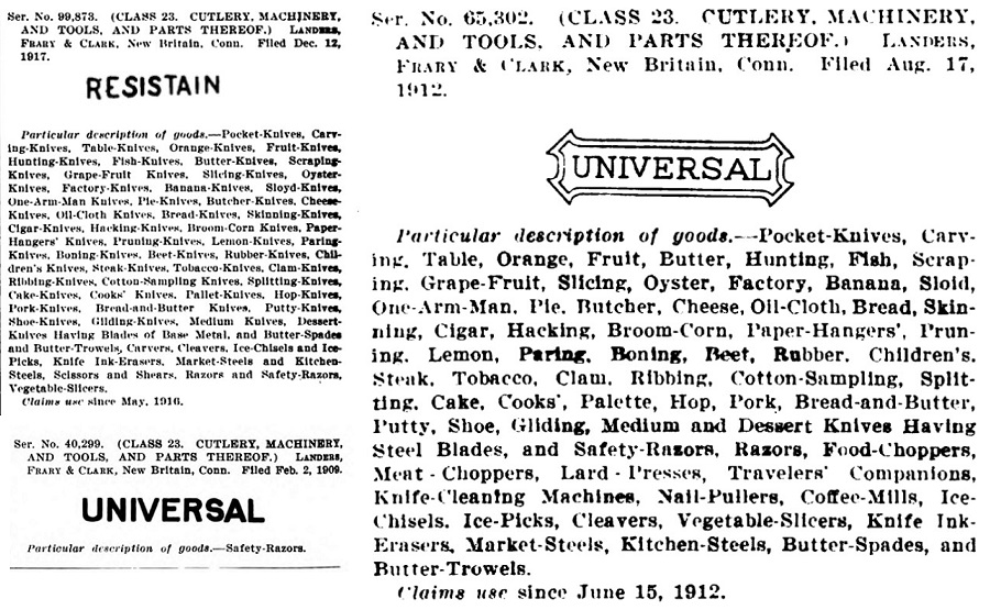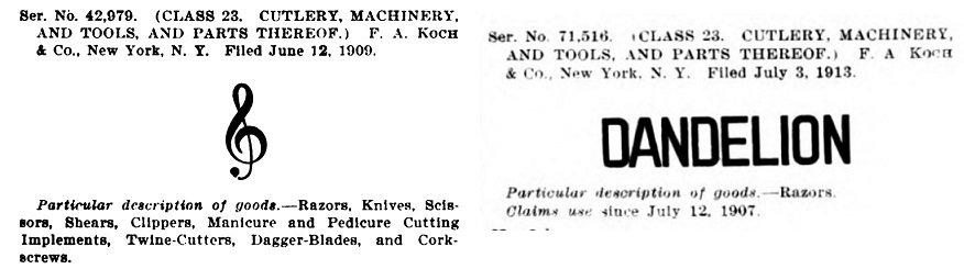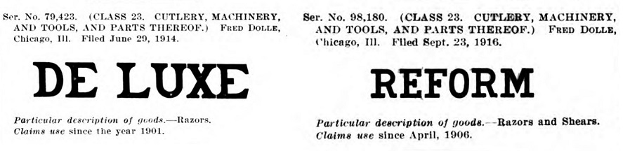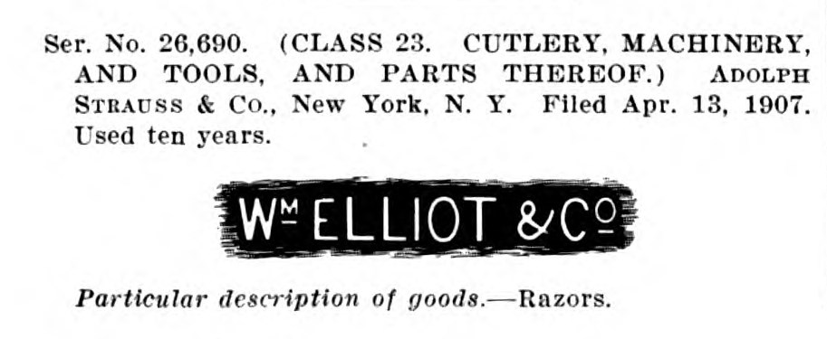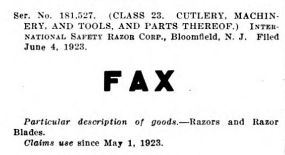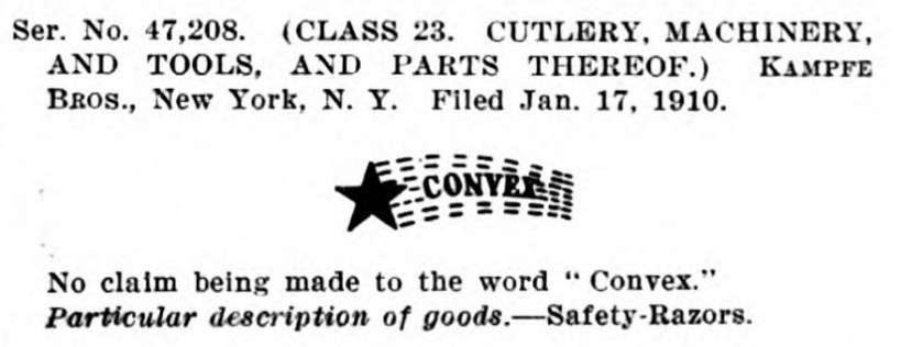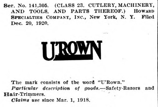 Пролистав Official gazette of the United States Patent Office, решил выписать от туда все фирмы, которые имеют отношение к бритвам (многие к безопасным бритвам) и скопировать их торговые марки.