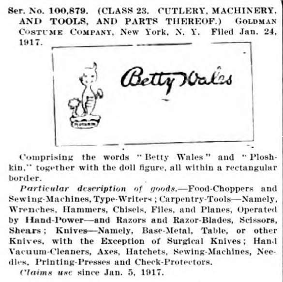 Торговая марка BETTY WALES PLOSHKIN зарегистрирована в 1917 году
