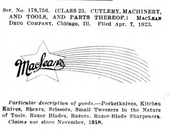 Торговая марка MACLEANS используется с 1918 года, перерегистрирована в 1923 году