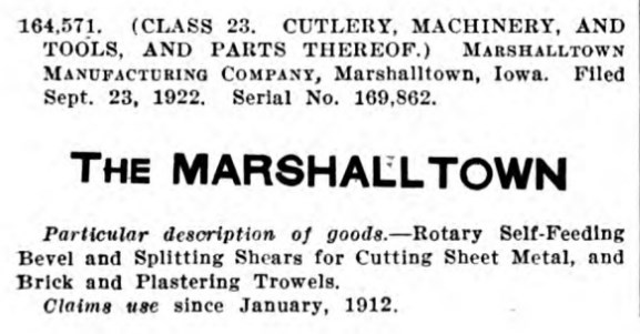 Торговая марка THE MARSHALLTOWN используется с 1912 года, перерегистрирована в 1922 году